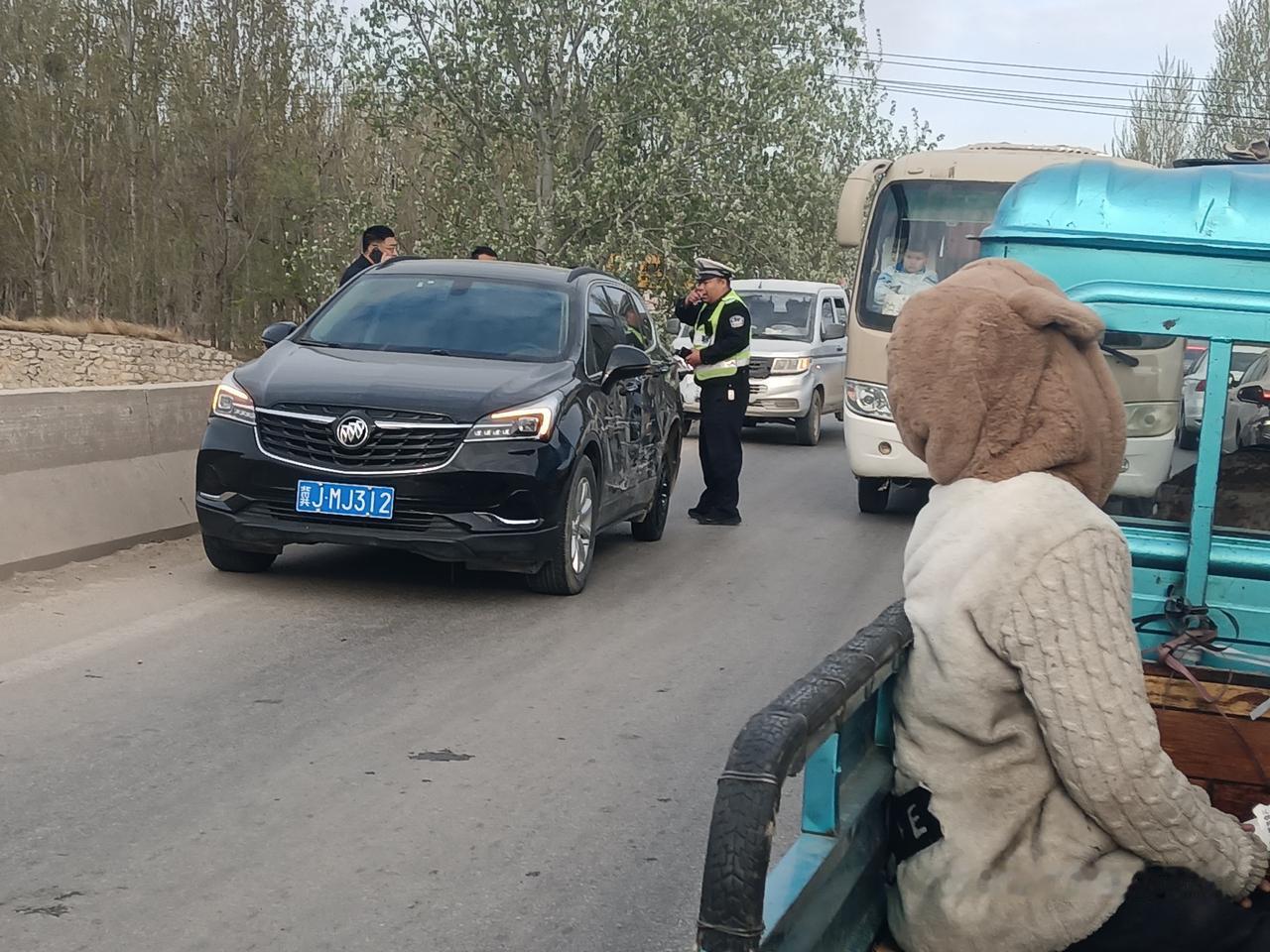 第一个,周一早晨在一座桥上,一辆黑色别克商务和一辆货车发生剐蹭,别克侧面凹进去一大块,货车的车灯前杠受损严重!这个车祸造成严重堵车,自行车都无法通行,交警徒步过去解决,但是别克车轮胎被挤爆,换胎用了半个多小时。 第二个,周二早晨在钢材市场门口,一辆白色电车撞了一辆老头乐!地上碎玻璃一大片,好在没有人受伤。 第三个,周二下午下班途中,一辆白色SUV撞了一辆老年代步车。 第四个,一辆黑色大众车和一辆绿色货车发生剐蹭,造成严重堵车。 这就是我们上班必经之路上堵车最严重频率最高的一段,不足一公里的一段路,有两座桥梁。东边堵车是因为路宽桥窄,四车道的路到了桥跟前,一下子变成两车道,不堵车才怪! 西边桥堵车是因为桥西侧有一个北去的乡道,而且大货车居多,所以只要是乡道上有大车左转上桥,道路必堵! 有走过这条路的吗?大家说是不是这回事呢?