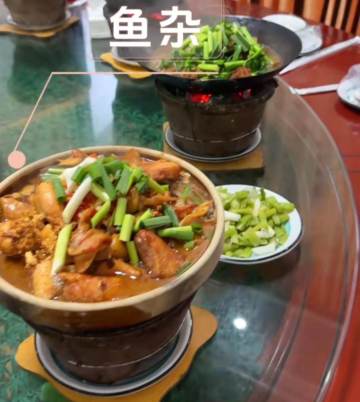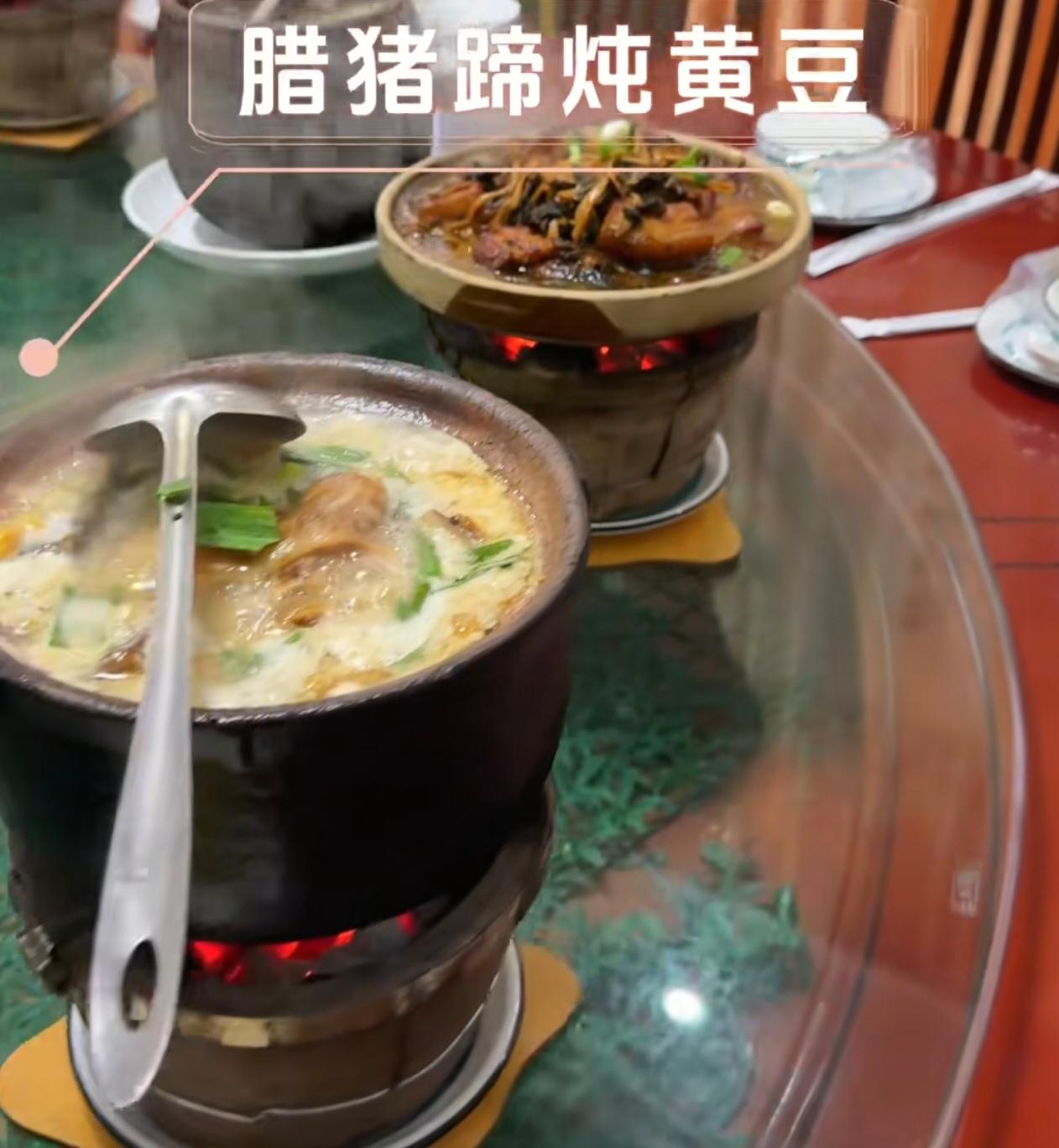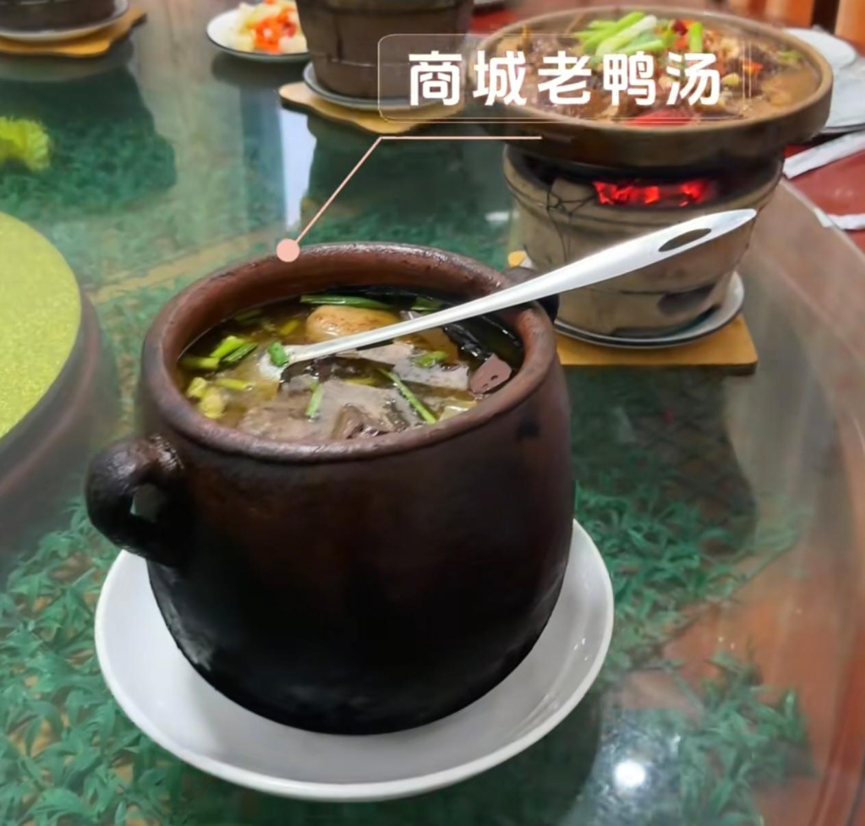 受朋友之邀,到信阳商城玩,其中最大的惊喜就是吃到了心心念念的商城农家菜! 朋友特意带我们来吃本地特色,一桌子炭炉砂锅直接给我看馋了:冒着热气的野菇手工肉丸、腊猪蹄炖黄豆、还有鲜香的商城老鸭汤,每一口都是实打实的锅气和诚意! 商城人真的太会吃也太热情了,朋友全程忙着给我们夹菜,生怕我们吃不够,老板也实诚得很,菜量足味道正,吃得我们胃里暖乎乎,心里也暖洋洋的。 这顿饭吃得舒坦又满足,真的吃了就忘不了,下次来我还要来吃!