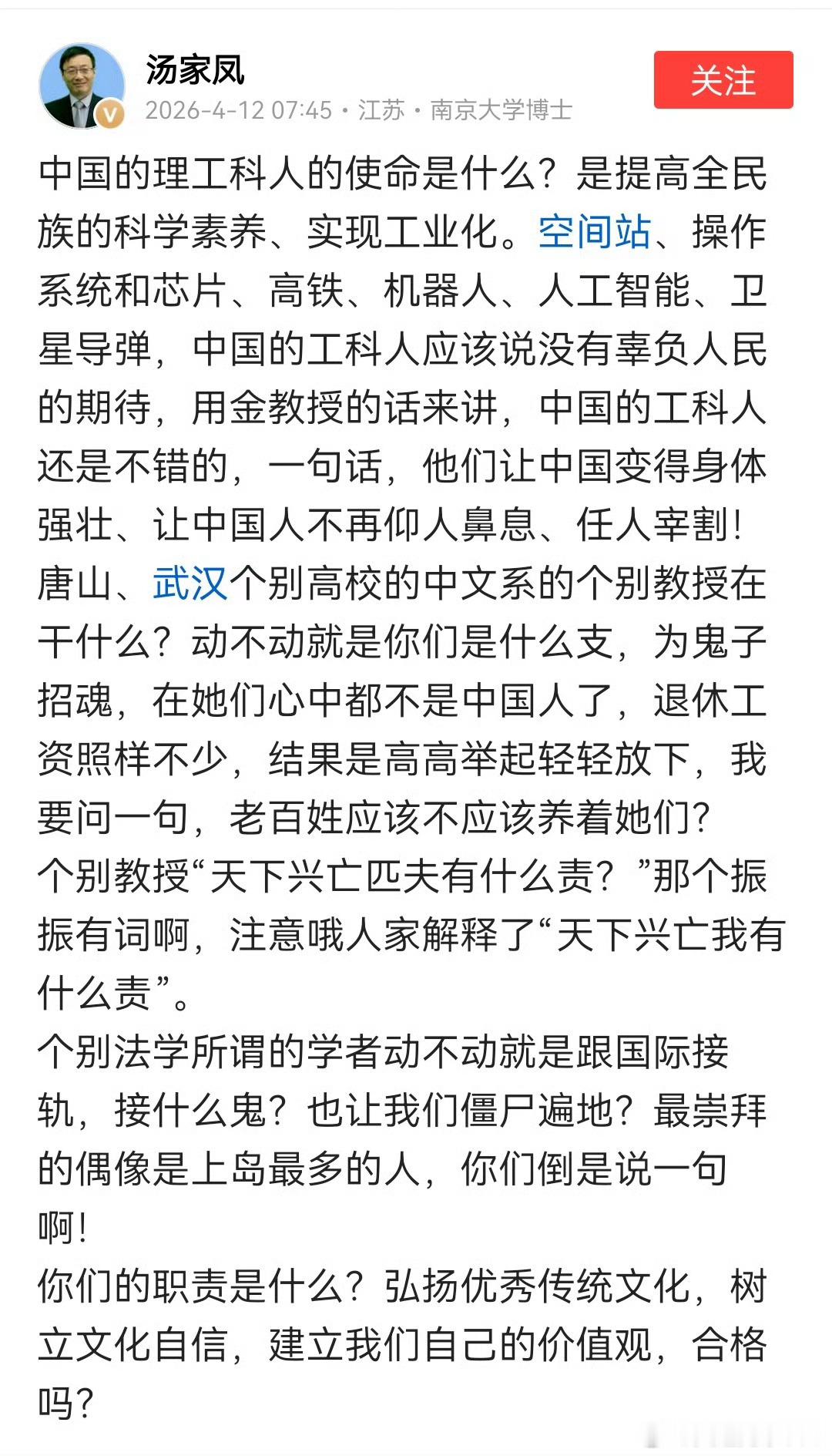 理科生的使命,是解决“有没有、强不强”的国家硬件建设”,是中国在国际竞争中硬刚的底气。