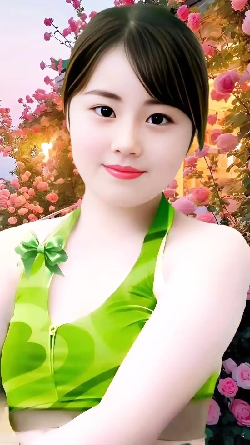 夏日清新穿搭,绿色连衣裙搭配粉色花海,元气满满!🌸💚