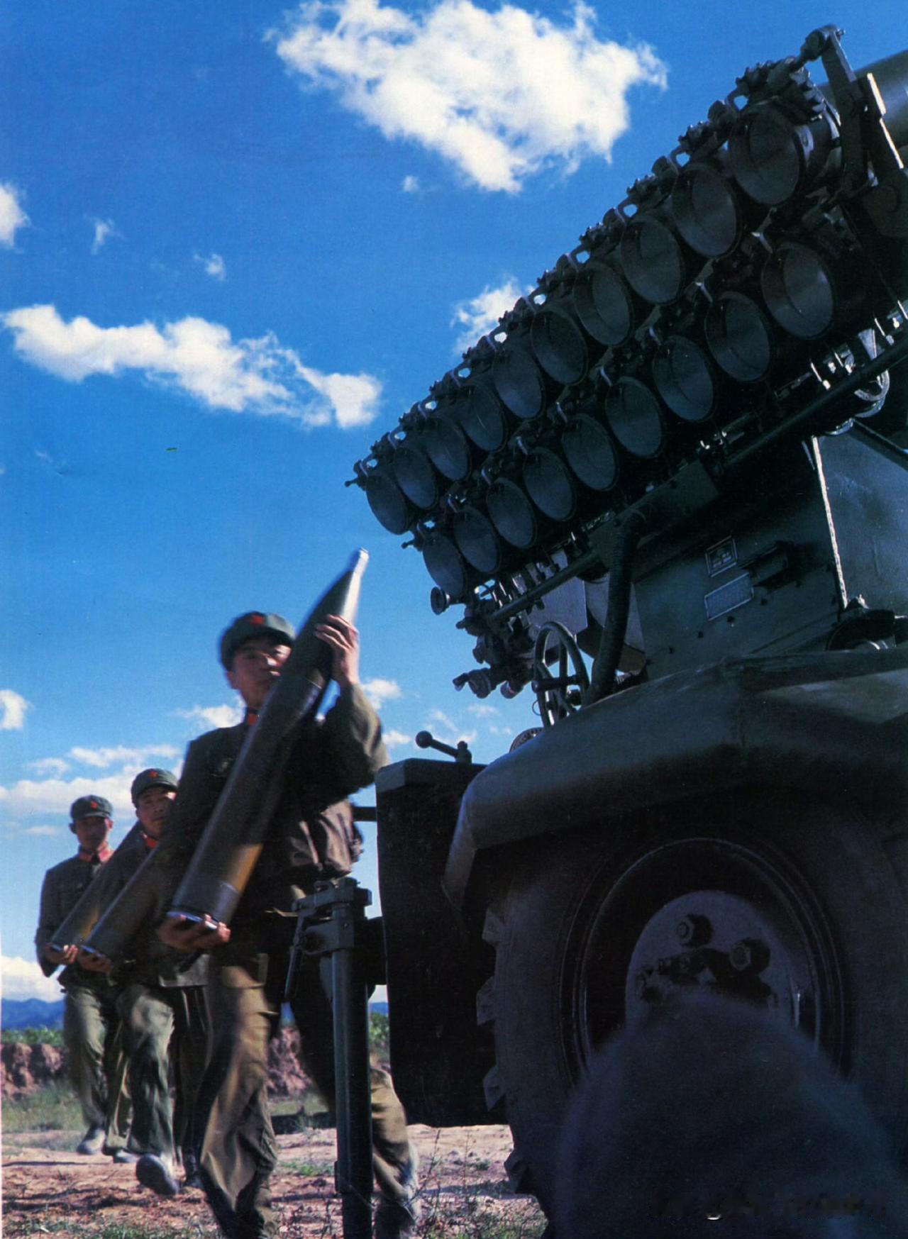 [呲牙] 不知名的早期国产火箭炮。看来国内早就开始重视炮兵的自行化,尤其是火箭炮。 图1是比较奇怪的国产轮式自行火箭炮,发射管真多啊,看上去是把2个63式130mm火箭炮发射管上下叠加起来。目前还不知道具体型号,有没有大佬赐教? 63式130mm火箭炮于1963年定型,配19管定向器、最大射程10.1公里。 基础型采用NJ230型4×4越野底盘(参见图3),改进型63-1式换EQ240型6×6底盘,并增了弹仓与炮手位(参见图4)。后来,又进一步改进为82式130mm火箭炮(参见图5)。 由于轮式底盘越野性能方面的缺陷,咱们还采用63式履带装甲输送车底盘改进出70式130mm火箭炮(参见图6),以上各种改型均曾用于对越自卫反击战等实战。 不过,10公里的射程实在是落后于时代,在新式的122mm火箭炮服役之后,这种型号繁多的130mm火箭炮就逐步淡出了。