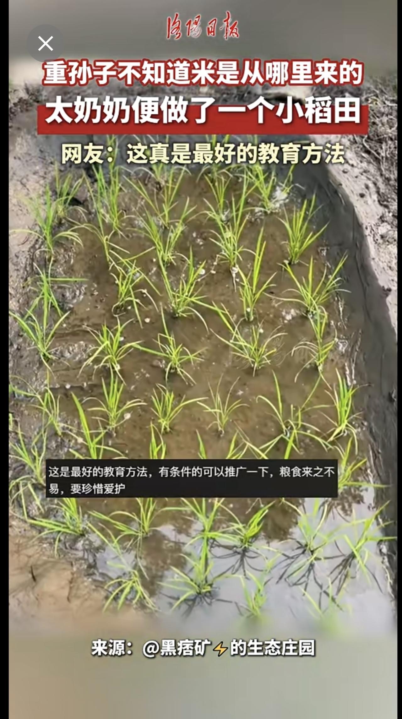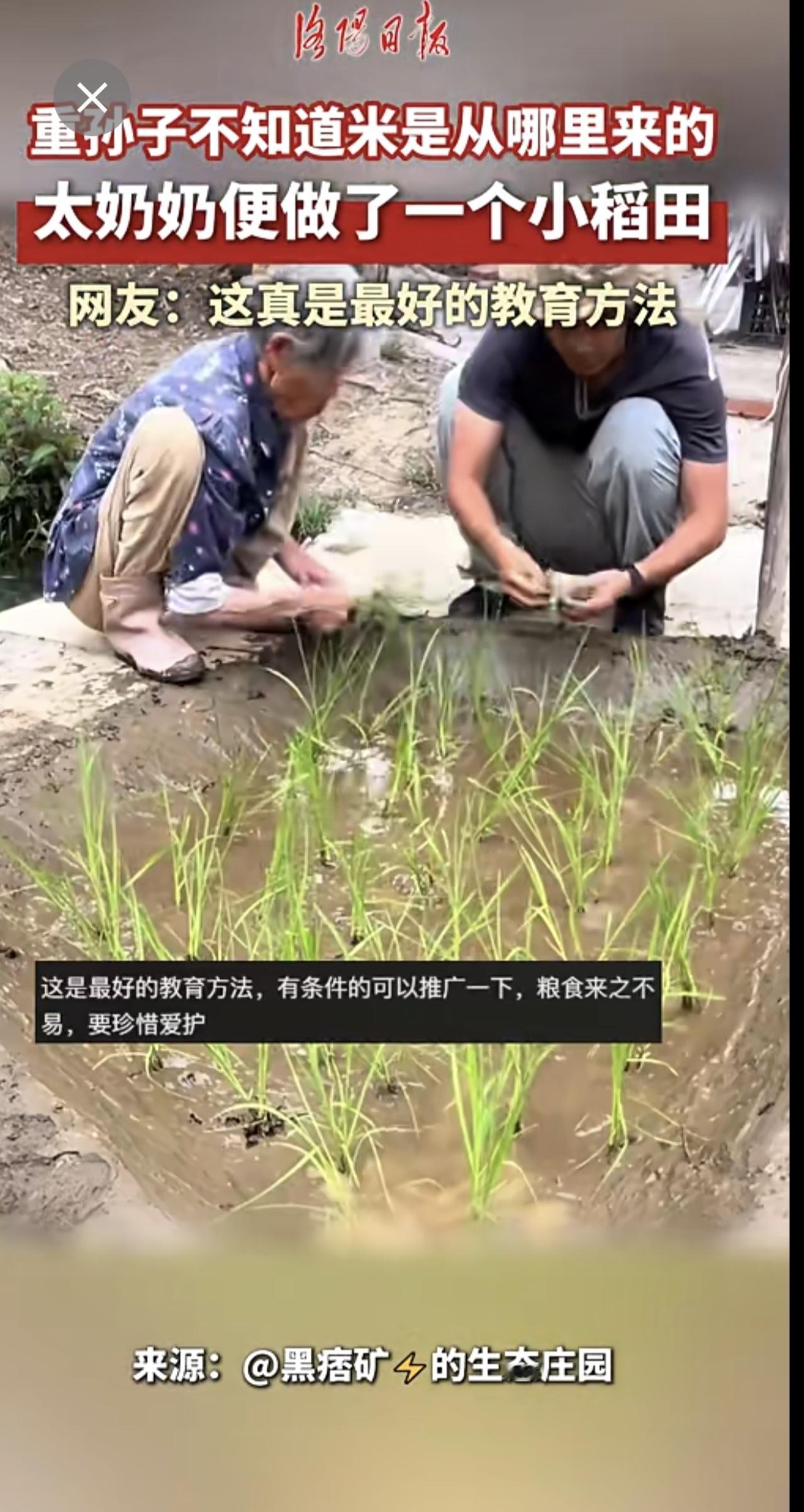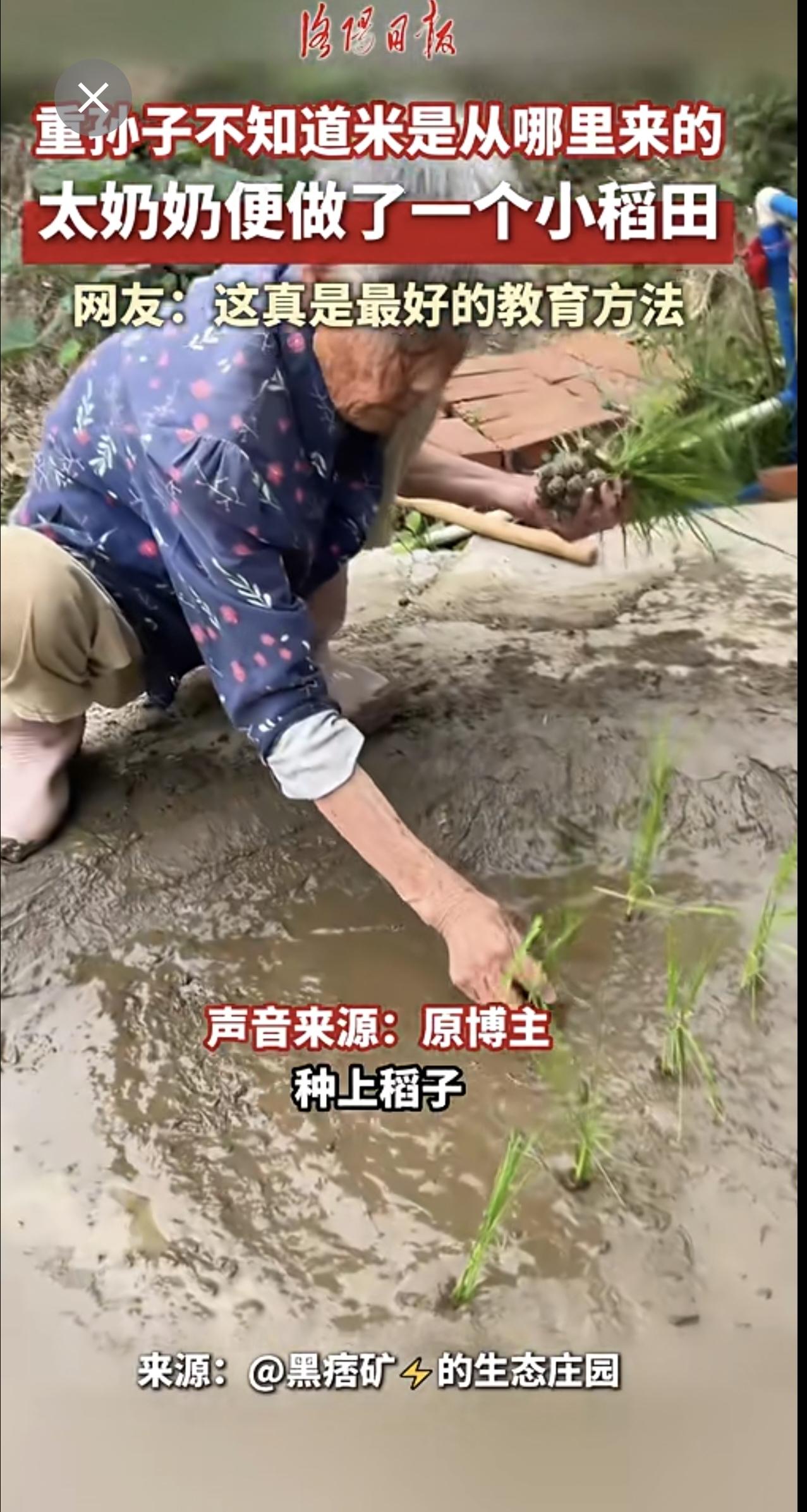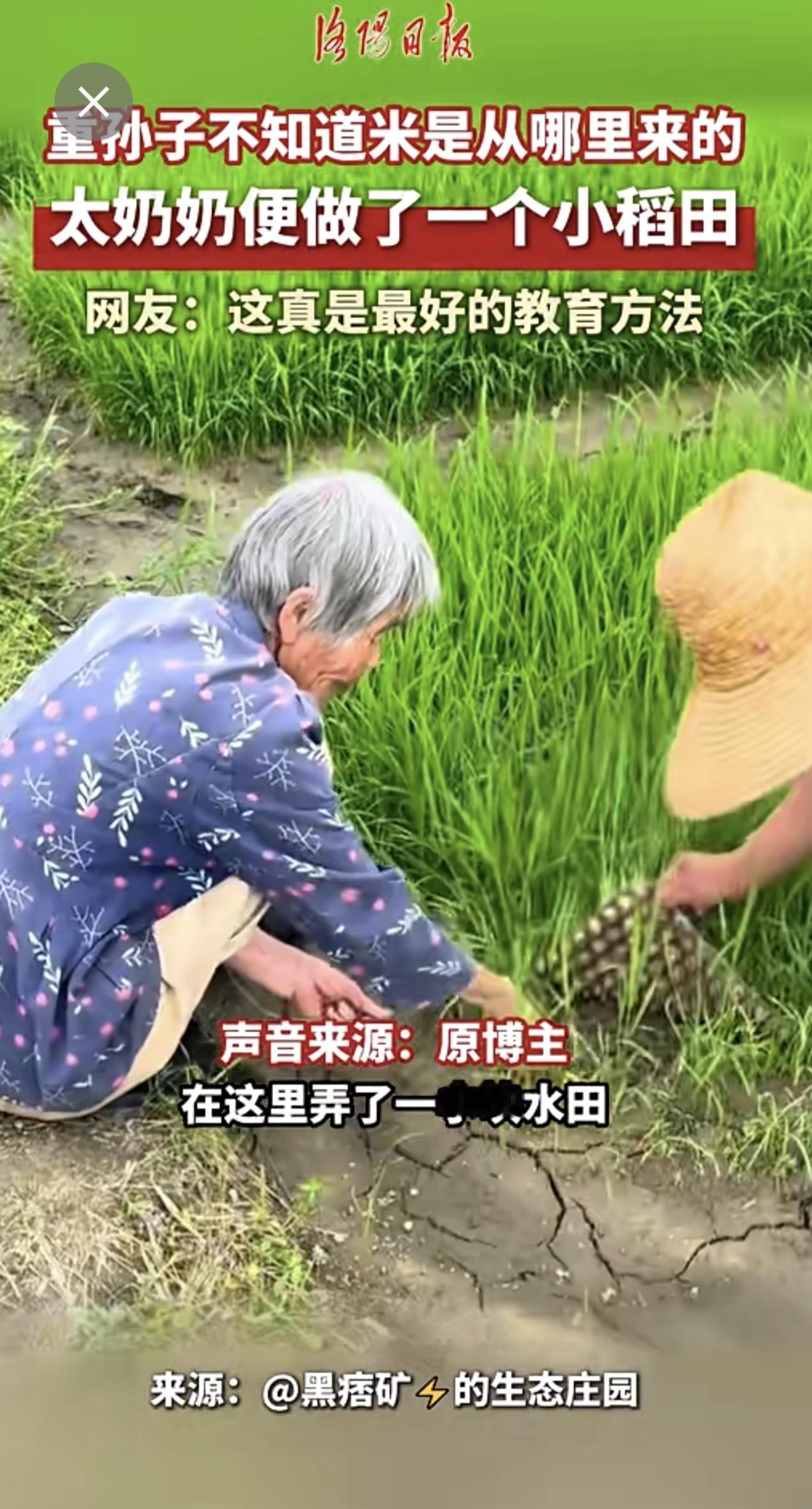 重孙子不知道米是从哪里来的,太奶奶便做了个小稻田