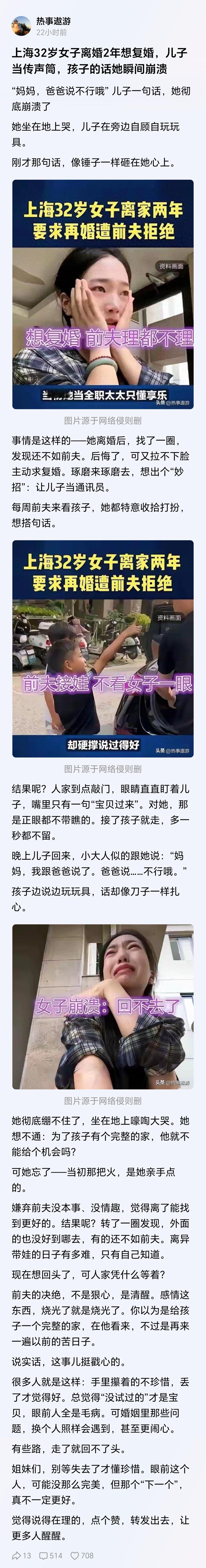 给孩子一个完整的家?难道离婚前孩子的家不完整?明明就是自己亲手毁了孩子完整的家
