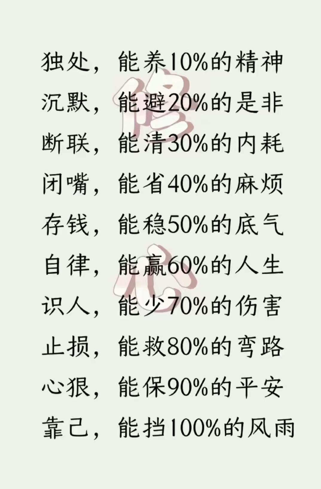 🍂晚年才懂:真正的赢家,是心安无事 年轻时总以为,有钱有势就是人生赢家。 拼地位、拼钱财、拼面子, 以为腰缠万贯、身居高位,才算活得体面、活得成功, 把所有精力,都耗在了追逐外在的浮华。 🌿 历经半生风雨,走到晚年才猛然醒悟: 是非成败转头空,青山依旧在,几度夕阳红。——杨慎《临江仙》 那些耀眼的权势与财富,不过是过眼云烟,生不带来死不带去。 真正的人生赢家,从来不是拥有多少外物,而是拥有最朴素的幸福: 身上无病,心里无事,夜里睡得香,白天吃得下。 丰子恺说:“心小了,所有的小事就大了;心大了,所有的大事就小了。” 人这一辈子,忙忙碌碌、奔波操劳, 为生计扛下压力,为家人倾尽所有,为得失辗转难眠, 到最后才懂得:本来无一物,何处惹尘埃。——慧能《菩提偈》 健康的身体、安宁的内心,才是此生最珍贵的财富。 辛辛苦苦一辈子,风里雨里走了大半生, 别到老了,还困在鸡毛蒜皮里算计,陷在恩怨是非里生气,揪着过往的遗憾纠结不休。 杨绛先生坦言:“我们曾如此渴望命运的波澜,到最后才发现:人生最曼妙的风景,竟是内心的淡定与从容。” 争来的名利,终会消散;计较的得失,终成过往;纠结的恩怨,终会淡化。 蜗牛角上争何事?石火光中寄此身。——白居易《对酒》 一味执着不放,只会折磨自己,辜负仅剩的时光。 弘一法师也道:“人生犹似西山日,富贵终如草上霜。” 世间万物,本就无常, 行到水穷处,坐看云起时。——王维《终南别业》 没有什么值得你用晚年的安稳,去换一时的执念。 ✨ 人到晚年,最顶级的通透,是学会放下: 看淡世事得失,宠辱不惊,看庭前花开花落;——洪应明《菜根谭》 放下过往恩怨,去留无意,望天空云卷云舒;——洪应明《菜根谭》 抛开无谓攀比,不被焦虑裹挟。 苏轼历经半生坎坷,终得心境豁达: “回首向来萧瑟处,归去,也无风雨也无晴。”——《定风波》 往后余生,不必讨好谁,不必强求谁,不必为难自己, 悟已往之不谏,知来者之可追。——陶渊明《归去来兮辞》 怎么开心怎么活,怎么舒服怎么过。 💛 人生下半场,拼的从来不是钱财与权势, 而是无病无痛的身体,无忧无虑的心境, 三餐有味,四季安宁,心安便是归处。 别让执念,耗尽你余生所有的温柔; 别让纠结,辜负你半生换来的通透。