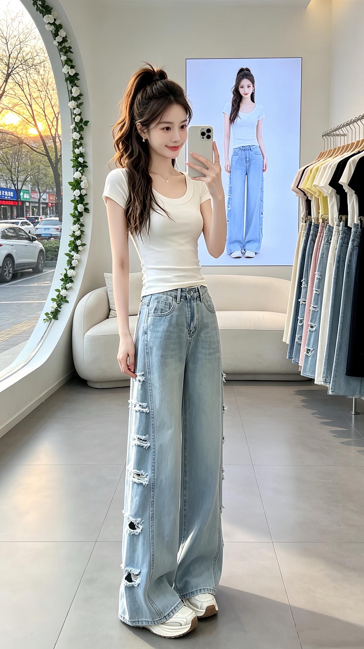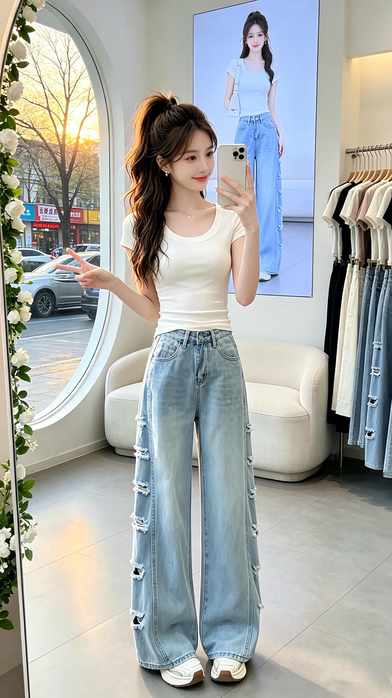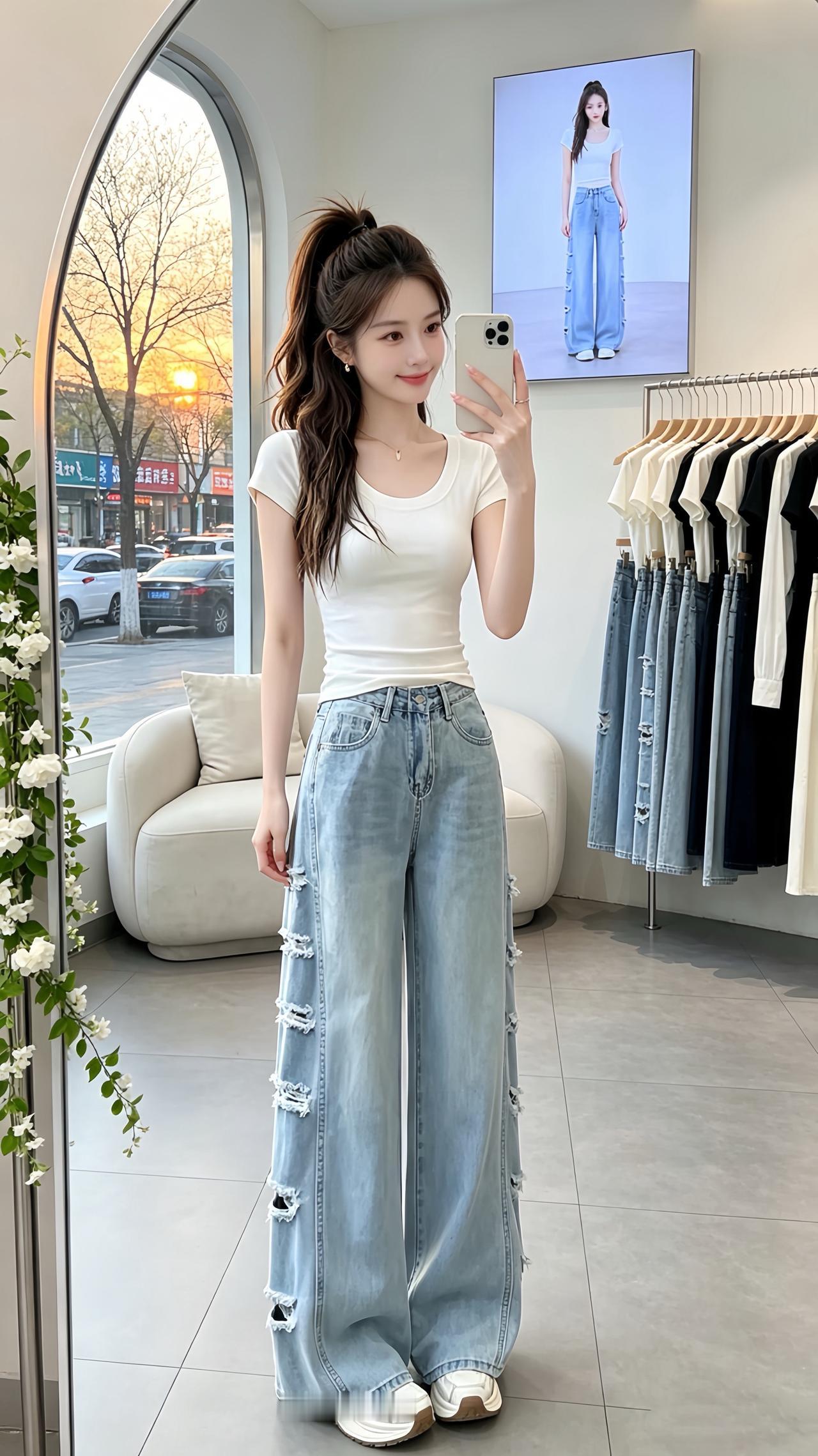 小个子穿搭 高腰阔腿裤