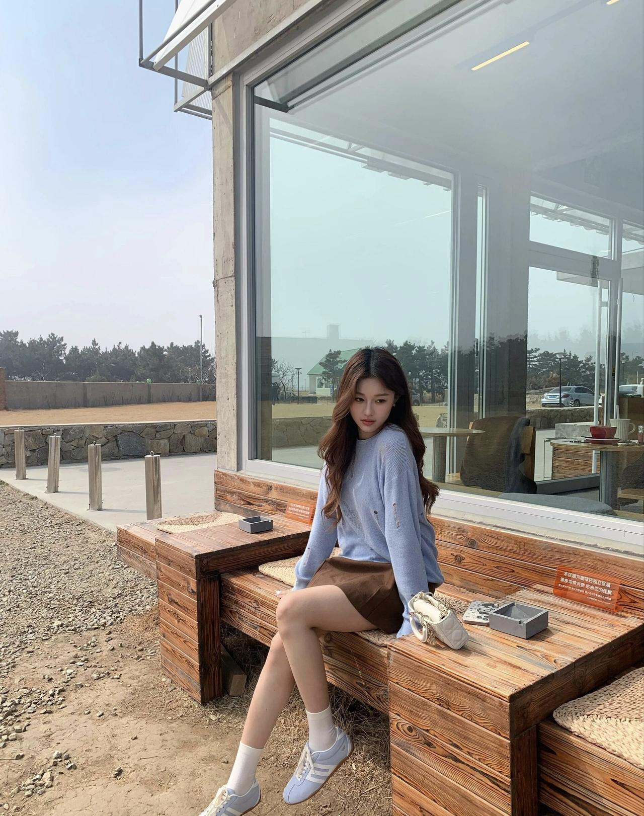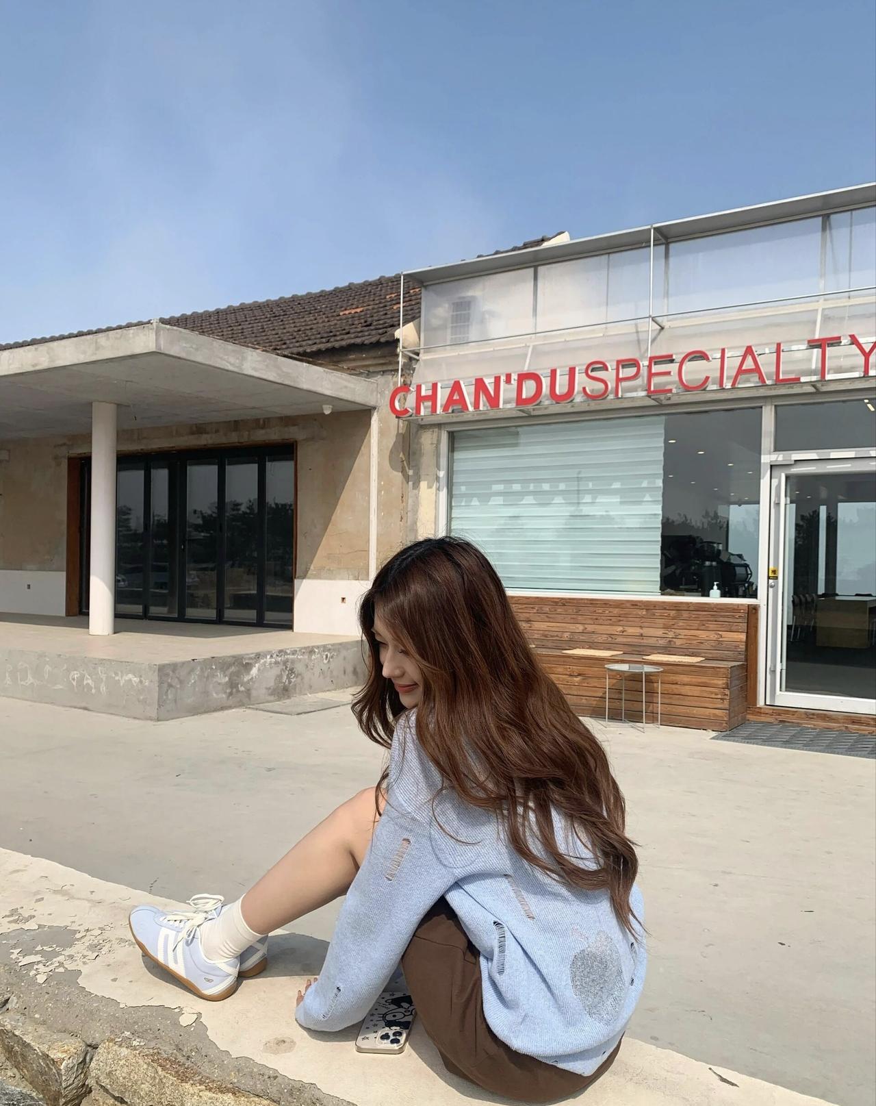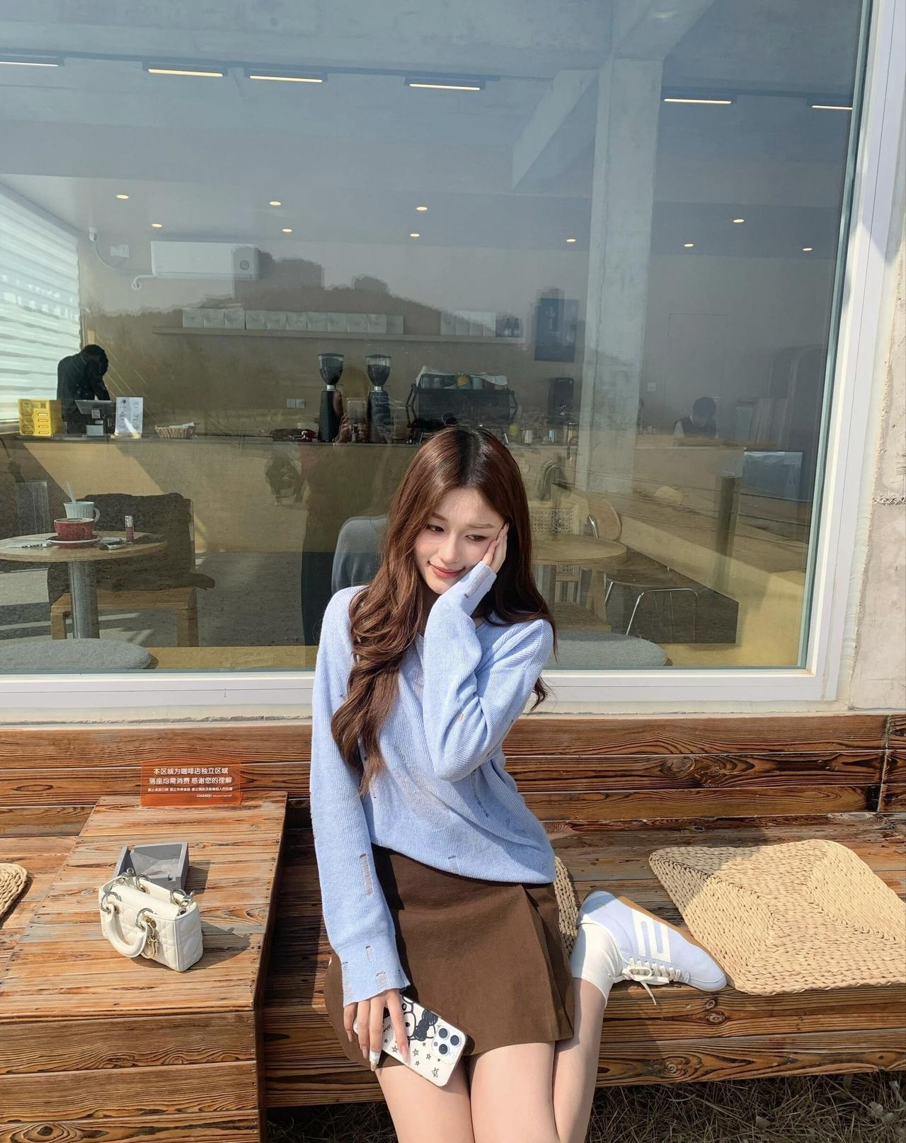 菱格针织衫的日常,随手比耶,捕捉松弛的美好瞬间。