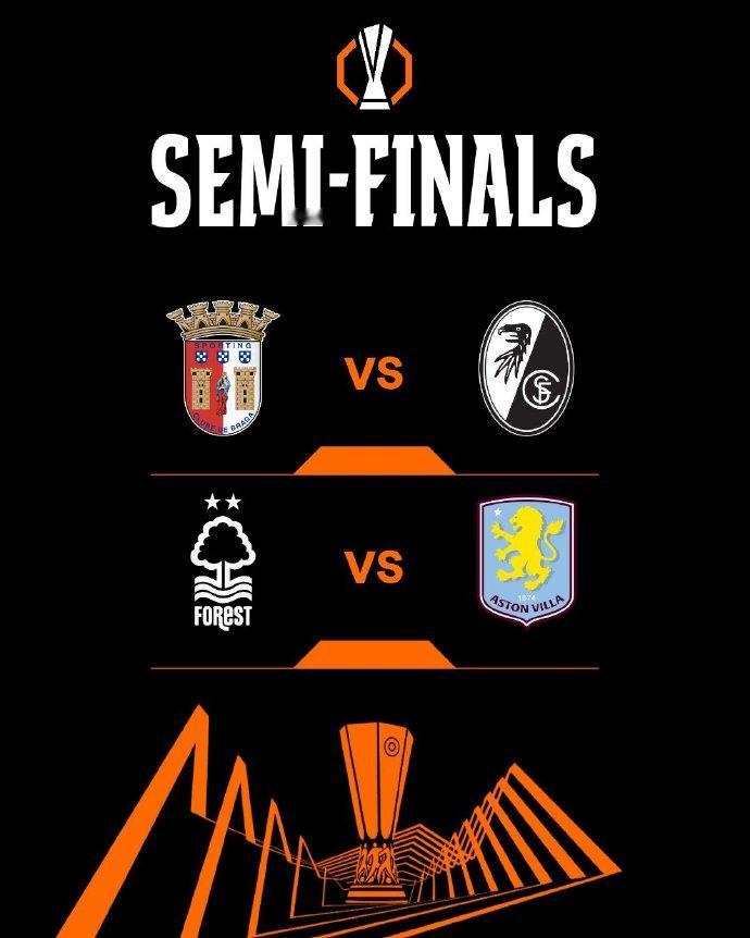 欧联杯半决赛首回合5月1日进行,次回合5月8日进行,维拉和弗赖堡先客后主。