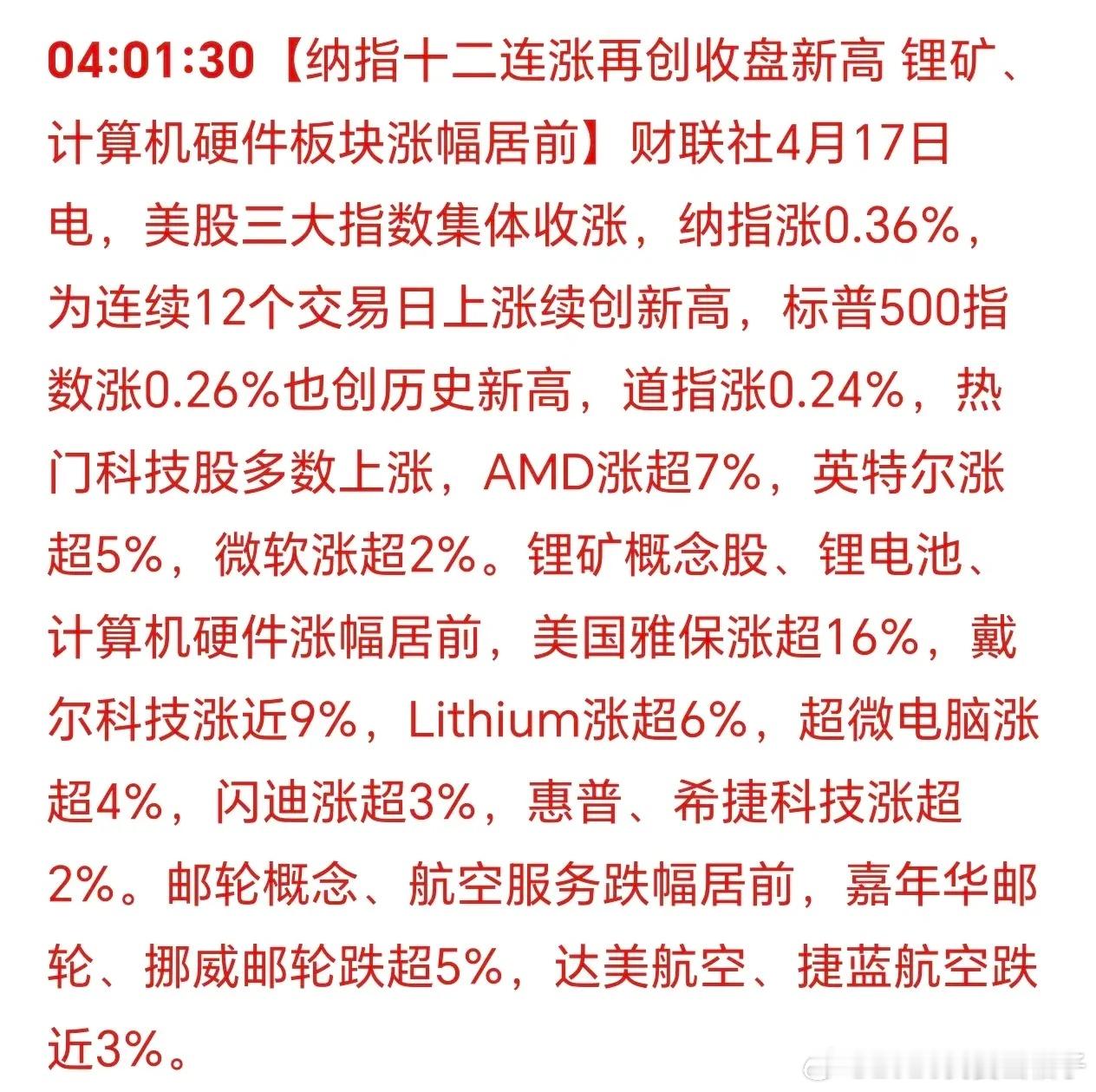 清晨5点30分,刚刚被手机消息震醒:美国三大股指集体收涨!