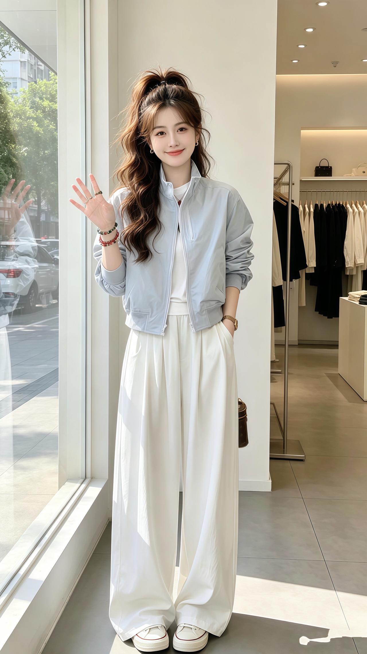 休闲阔腿裤套装 休闲百搭 洋气减龄