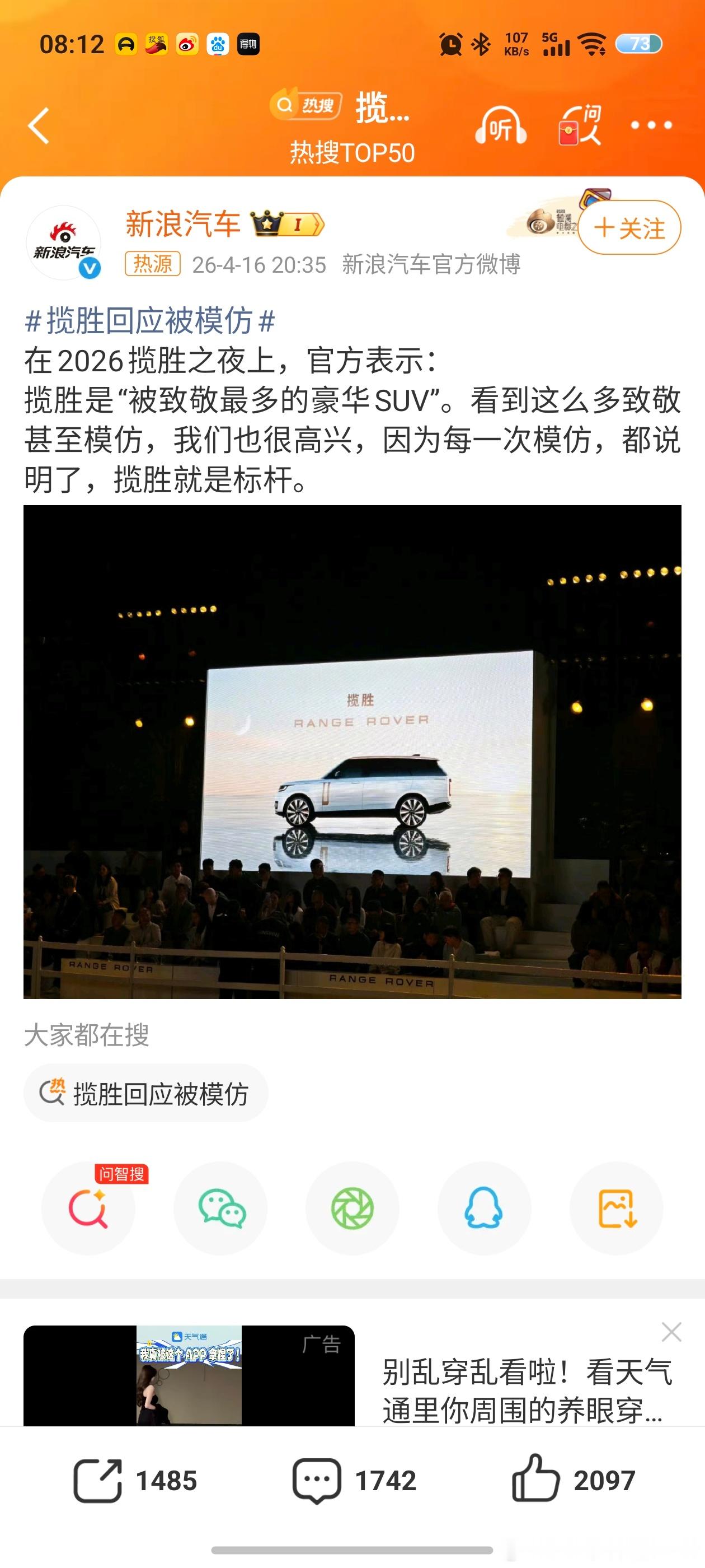 LH手机科技爱好者路虎 2026揽胜之夜,官方回应了被模仿抄袭,他们很高兴因为每一次模仿,都说明揽胜就是标杆。的确,市面上有很多致敬路虎的设计,在设计上它的确是很多品牌的引领者。所以啊,接下来原创设计才是部分品牌需要做的事,不能一味的去模仿。揽胜回应被模仿