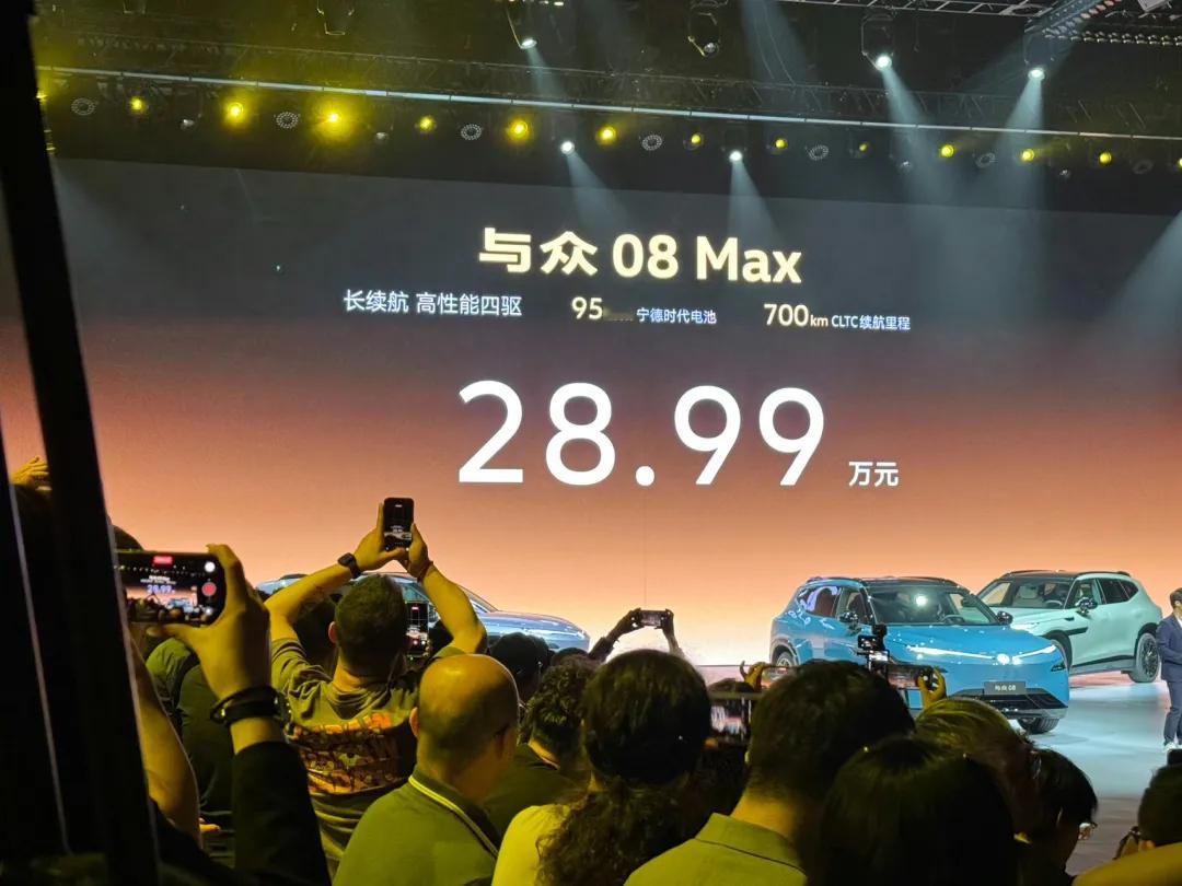 大众小鹏合作首车!与众08售价22.99-28.99万元,跟之前的预售价一样,还