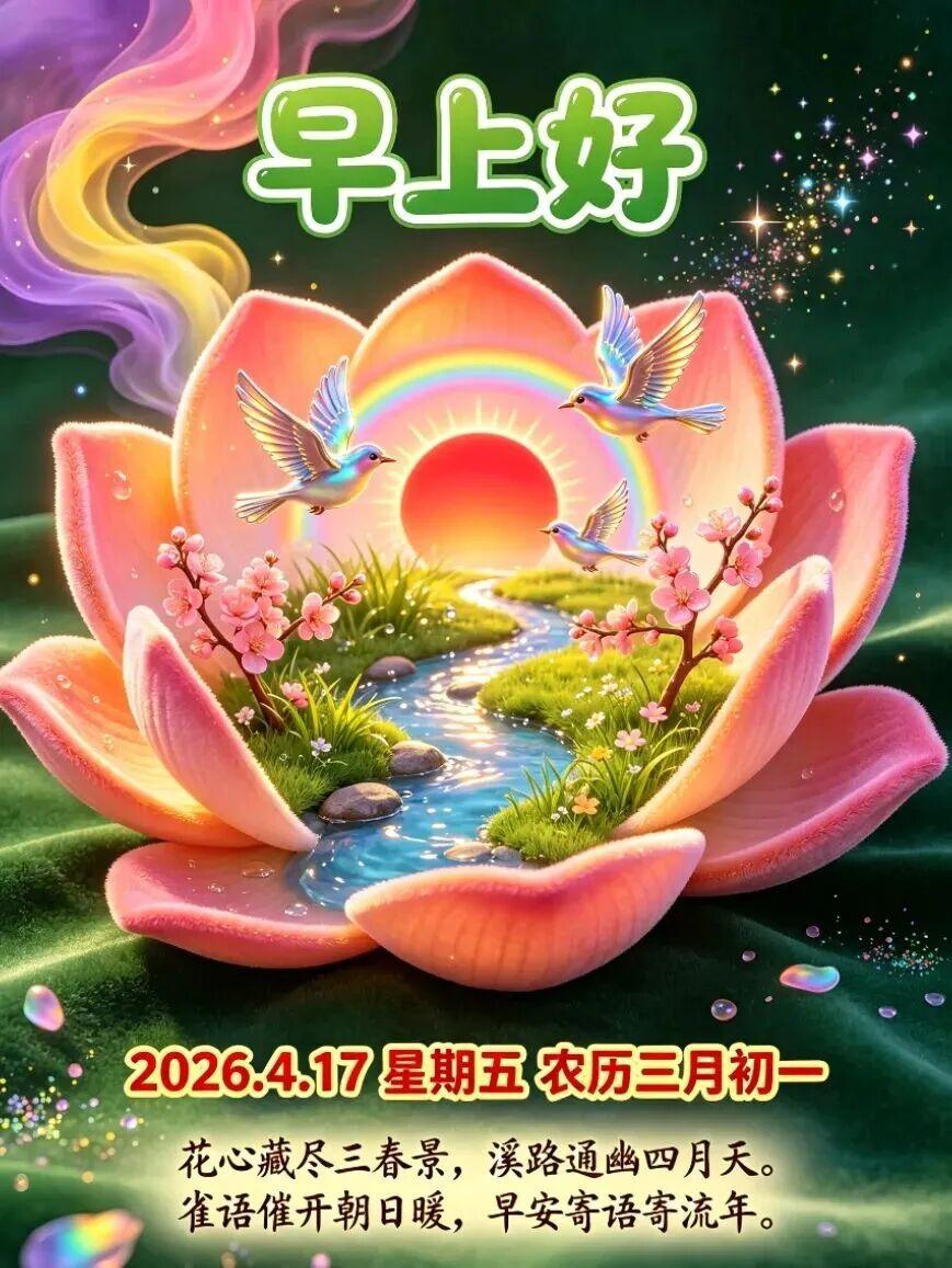 三月初一,晨光熹微。繁花灼灼,春日艳艳,这一季的春色浓烈醉人。愿你在春的暖阳里,被岁月温柔以待。早安!愿你心中有景,花香满径。🌺🌸🏵️🌹