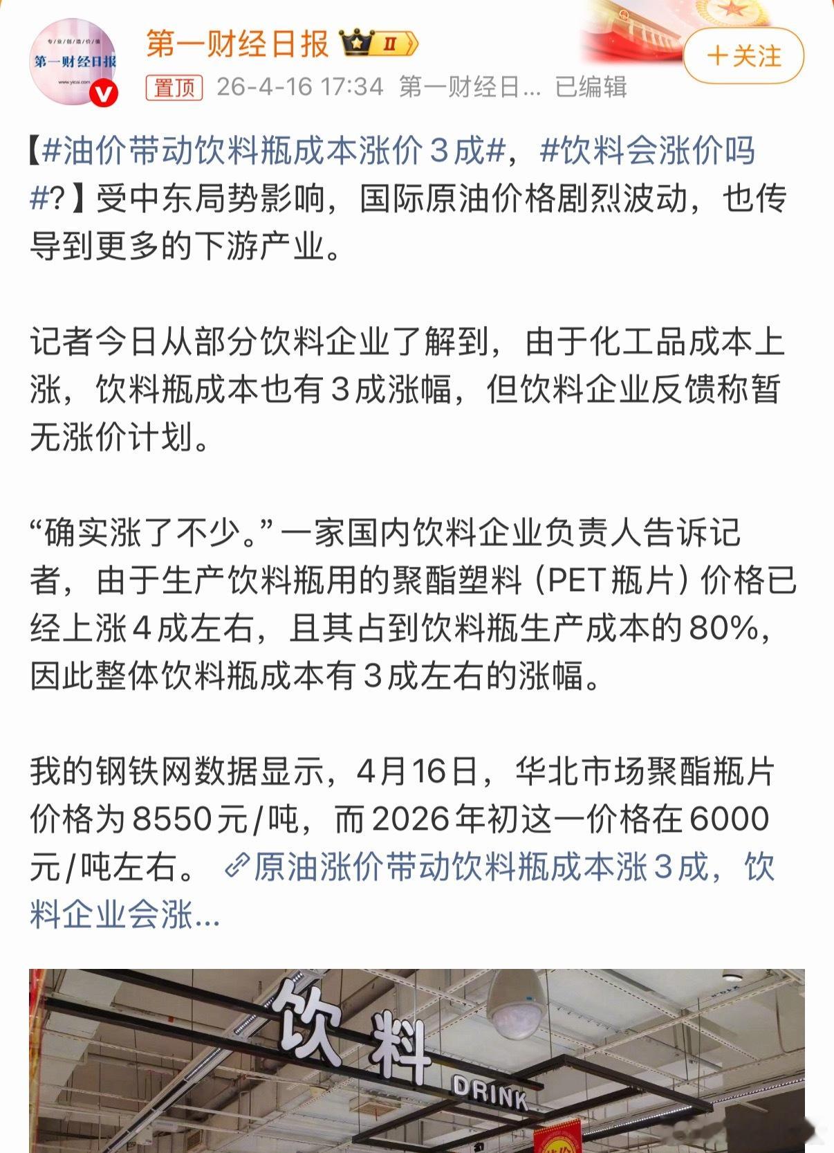 饮料会涨价吗回头局势稳定,原油价格下调,涨价的商品会降价吗?