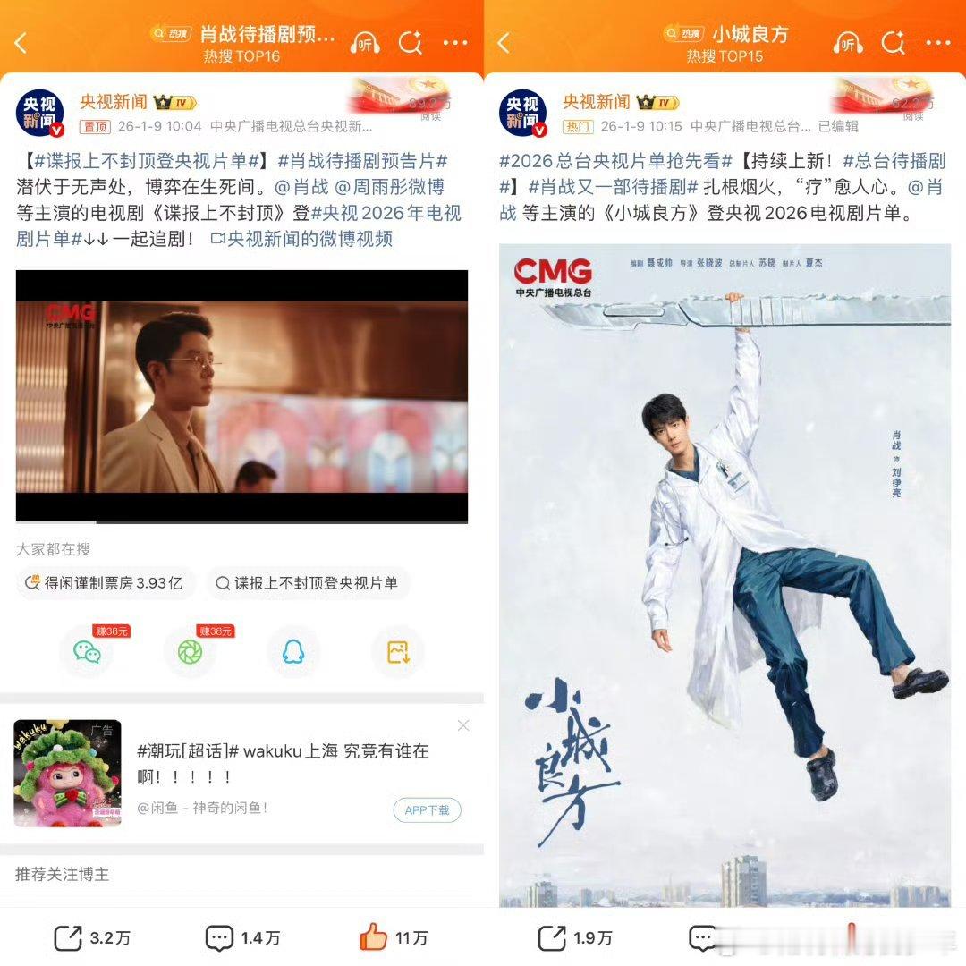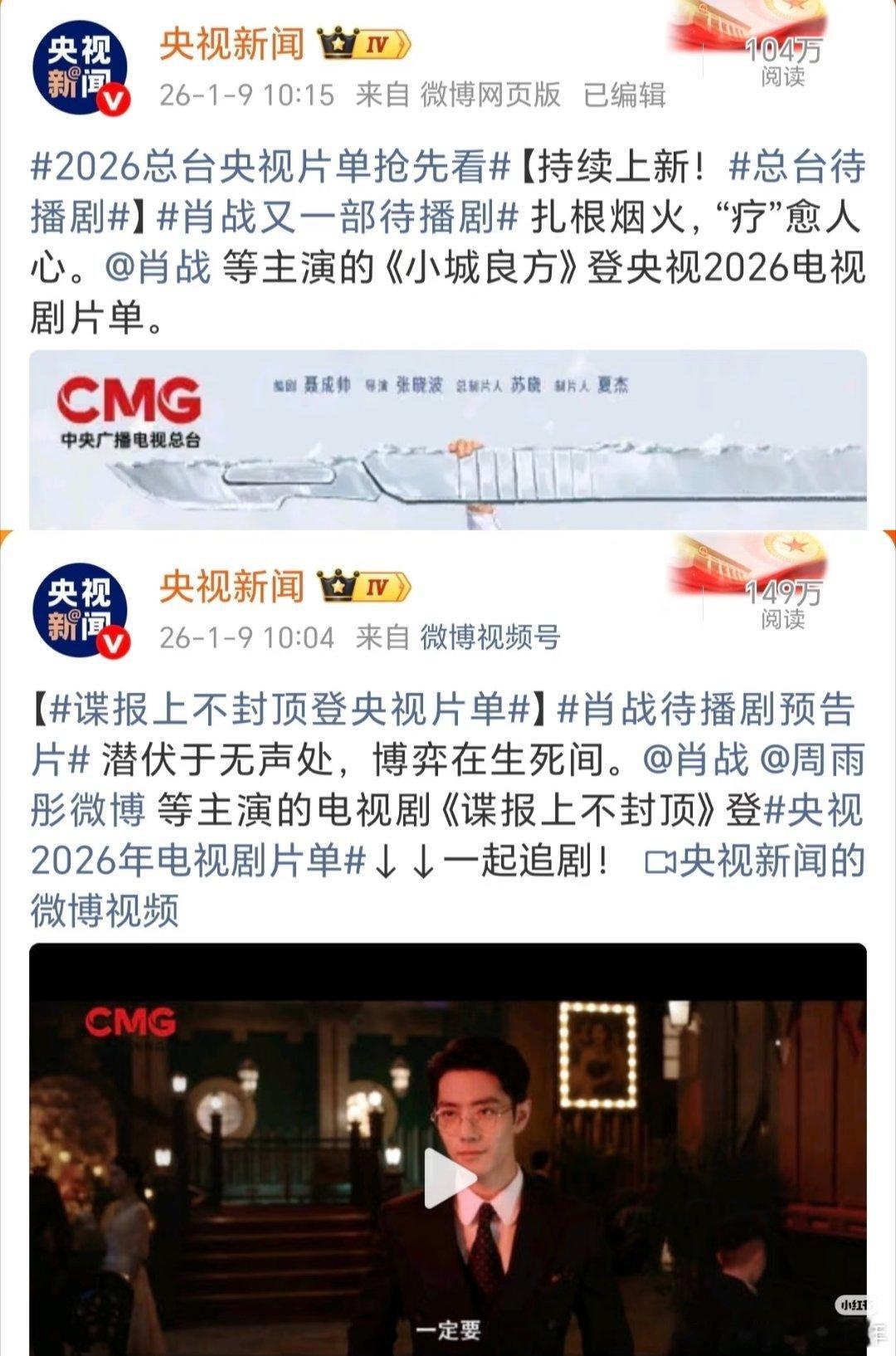 肖战2部剧登浙江卫视片单肖战谍报上不封顶和小城良方都已经被央视预定,浙江卫视估计要跟播,肖战的待播剧拍一部上一部非常抢手!肖战俩字就是金字招牌~期待视帝新作肖战2部剧登浙江卫视片单