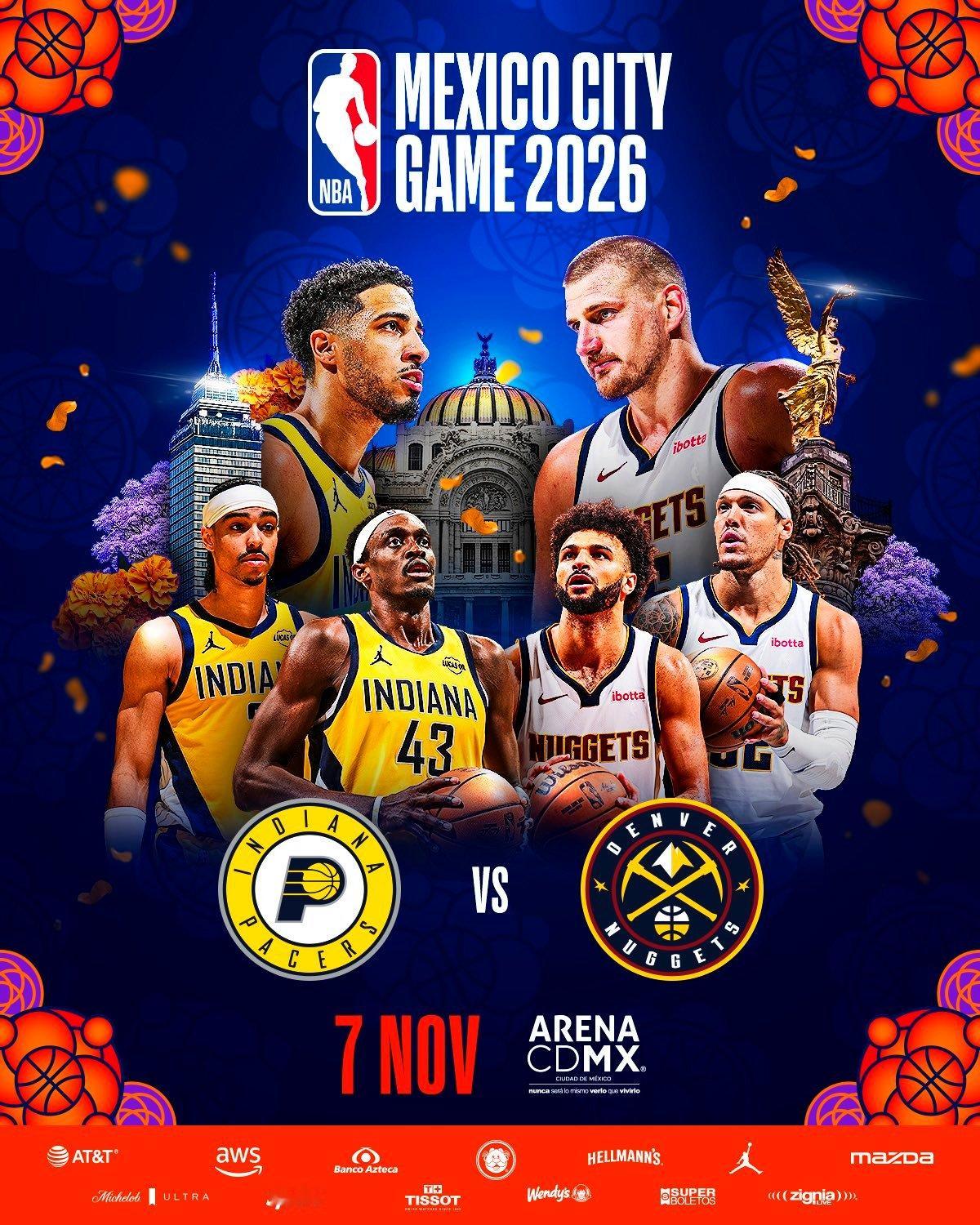 官方公布2026-27赛季墨西哥赛球队:步行者vs掘金,11月7日