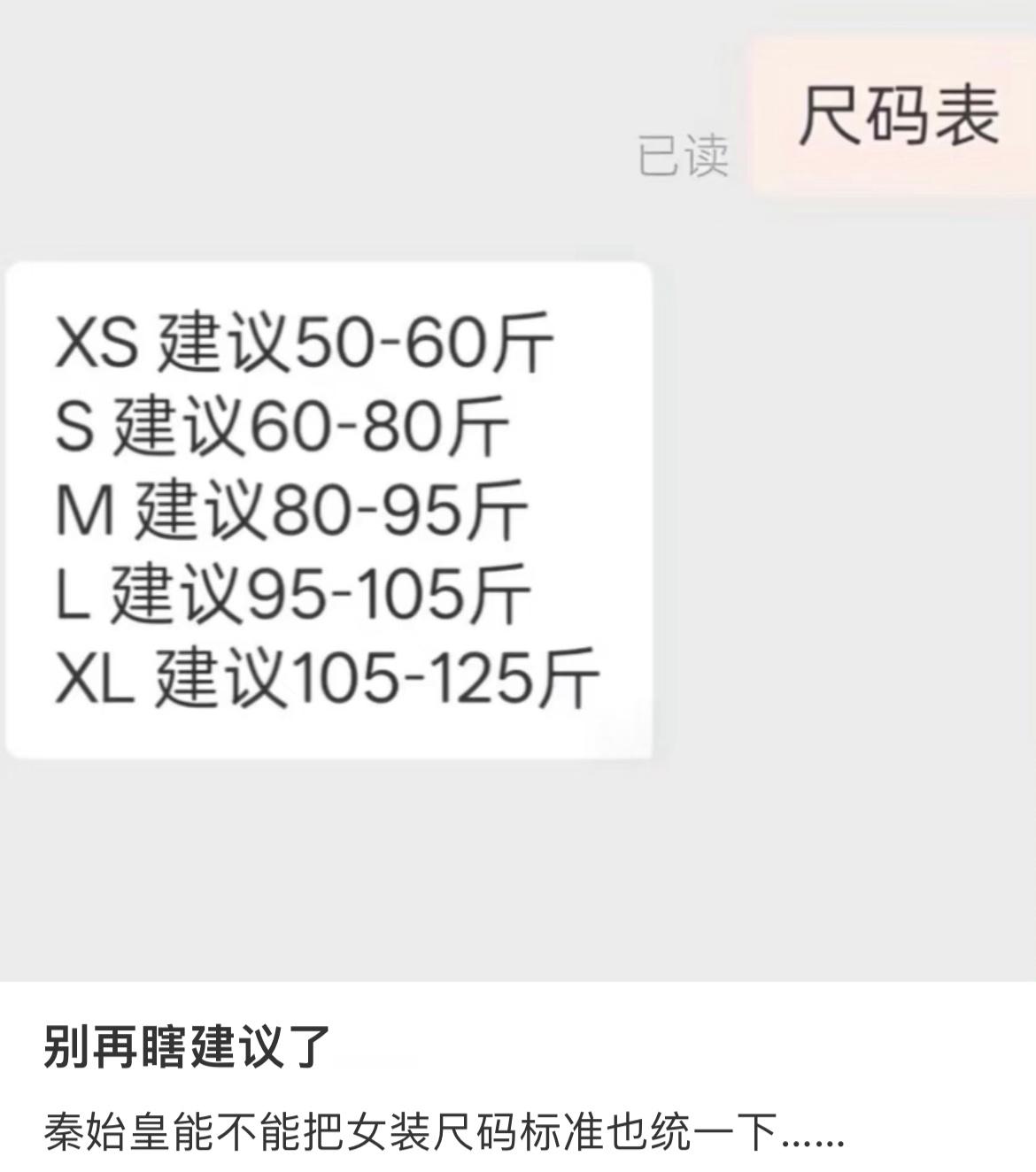 秦始皇能不能把女装尺码标准也统一下…