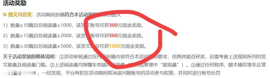 家人们,早上好呀! 今天,我要告诉大家,我心心念念的“盲盒”终于开拆了。上次发文说我想冲击图2中的1000元大奖,现在结果来了。 很遗憾,与大奖擦肩而过,想当初,为了冲击这个大奖,我足足写了60多篇文章,第一关就毙了不少,第二关通过48篇,只是可惜最后需要的5000阅读量没达标,最终拿下第二个奖项500元,也非常不错了,必须给自己的毅力点赞[耶] 曾经,有人留言说:晒这个是不是因为觉得你自己赚的挺多?我没有怼他,因为这位友友我们虽然没关注,但是之前也经常互动,所以我宁愿相信他没有恶意。 今天,我要告诉大家,我晒不是来拉仇恨的,我是希望很多跟我一样喜欢写作、喜欢💰💰的同道中人,都加入进来,独乐乐不如众乐乐,有米一起赚不好嘛?