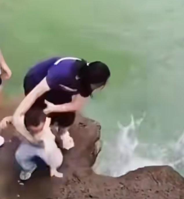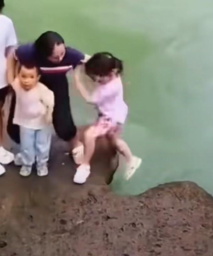 一家人站在水边合影,妈妈拽儿子时意外把女儿撞的掉了下去, 急忙扔下儿子, 跑到水流另一边救起女儿。 网友说,这妈妈太不负责了,一点安全意识也没有, 孩子那么小还叫她在河边站着, 这种地方压根就不能去, 孩子那么小, 幸好抓住石头, 万一冲走了咋办, 这大人也是太不负责任了。