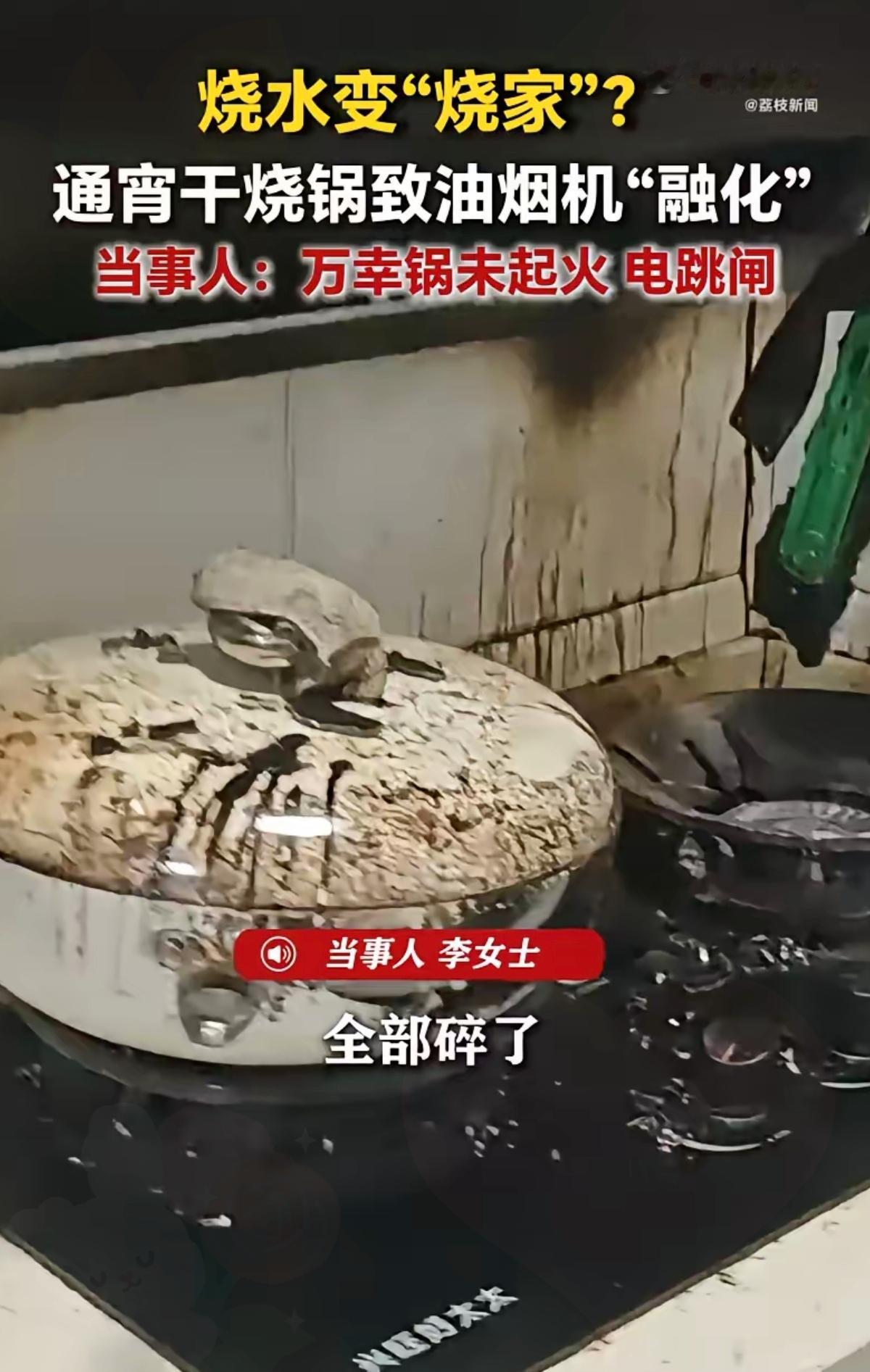 真的太后怕了!就因为睡前烧个水忘了关火,整整干烧六七个小时,整个家差点就没了! 重庆这位李女士,睡前烧水想着等会儿就关,结果一犯困直接睡死过去。等第二天醒来才发现,锅早就烧空,油烟机面板被高温直接熏化,线路都露了出来,还好电路及时跳闸,才没酿成大祸。可光是燃气灶,就得整套换掉。 很多人都觉得小火慢煮没事,睡前煮个东西、烧壶水总想着眯一会儿再管,偏偏就是这种侥幸心理最要命。火这种东西根本不会等你醒,一旦没人看管,几分钟就能出大事,别拿一整个家的安全赌那点懒。 比起事后后悔,不如事前多上点心,但凡需要用火用电,定个闹钟多盯一眼,真的没那么麻烦。 你们平时做饭烧水,有没有过这种差点忘关火的惊险时刻?煤气灶火灾