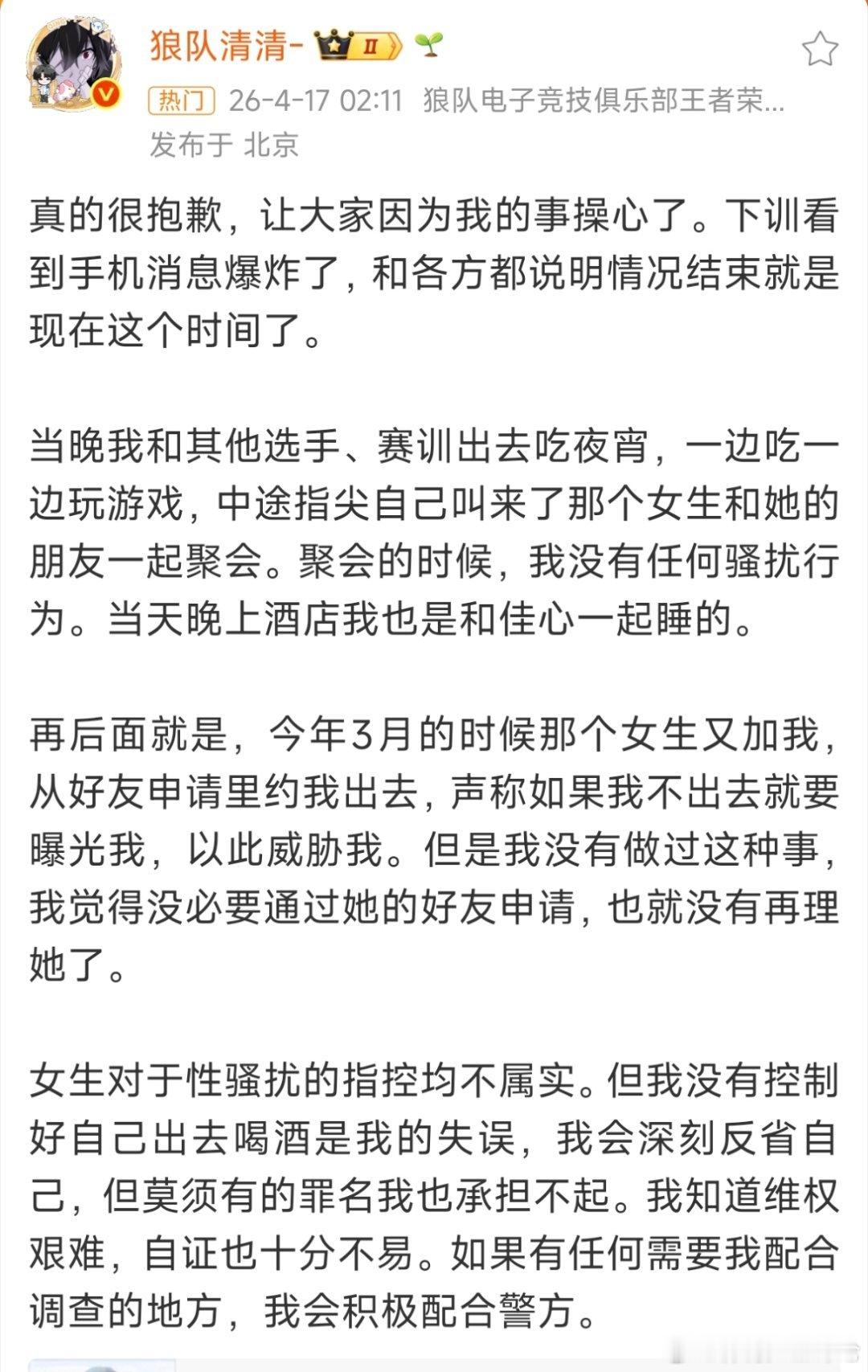 从时间线上来说,当时没有爆料而是等到现在,确实有点不太合理。现在清清回应了,看看女方还有啥说法吗👀
