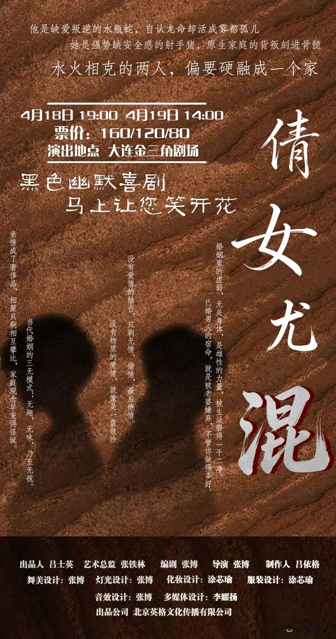 四月大连,赴一场有滋有味的文旅之约~①演出活动 1.大连大剧院 演出名称:大型沉浸式音乐童话剧《白雪公主和七个小矮人》 演出时间:4月11日 10:00 11:50 13:40 15:30 17:20 19:00 演出名称:正版授权沉浸式推理舞台剧 《神探迈克狐——盛宴谜案》 演出时间:4月18日 15:00 演出名称:30人豪华交响版《天空之城——宫崎骏&久石让经典动漫作品交响音乐会》 演出时间:4月18日 19:30 演出名称:万马奔腾——马头琴专场音乐会 演出时间:4月24日 19:00 演出名称:春之浪漫·光影二重奏音乐会 演出时间:4月25日 19:00 2.大连人民文化俱乐部 演出名称:谷雨·春生和鸣“与朋友们系列”国潮音乐会 演出时间:4月17日 19:00 3.宏济大舞台 演出名称:《凤还巢》 演出时间:4月4日 14:00 演出名称:《韩玉娘》 演出时间:4月18日 14:00 4.大连开发区大剧院 演出名称:《屁屁老爹&屁屁侦探——伟大的联手》 演出时间:4月12日 15:00 演出名称:琴迷键与簧 黑管钢琴二重奏音乐会 演出时间:4月18日 19:00 5.金三角剧场 演出名称:《科学狂想秀》 演出时间:4月11日 15:00 演出名称:《白雪公主》 演出时间:4月11日 19:00 演出名称:《扈家庄》《清官册·审潘洪》 演出时间:4月12日 15:00 演出名称:《爱乐之城》浪漫烛光音乐会 演出时间:4月17日 19:00 演出名称:黑色幽默喜剧《倩女尤混》 演出时间:4月18日 19:00 4月19日 14:00 演出名称:《春之回响·光影流年》电影金曲视听音乐会 演出时间:4月24日 19:00 演出名称:《梁祝·红楼梦》国风唯美浪漫经典名曲音乐会 演出时间:4月25日 15:00 演出名称:《铁血丹心》经典传承名曲音乐会 演出时间:4月25日 19:00 演出名称:《三打白骨精》 演出时间:4月26日 10:30 15:30 6.大连体育中心体育馆 演出名称:2025-2026 陈小春 生·旦·净·末·丑 巡回演唱会 演出时间:4月11日 19:30 演出名称:Beyond乐队叶世荣2026「你中有我」巡回演唱会 演出时间:4月18日 19:00 演出名称:陈立农《青春为名》2026演唱会 演出时间:4月25日 19:00 7.大连世界博览广场多功能厅 演出名称:“三十而立 岁月流金“2026德云社成立三十周年系列演出之孟鹤堂、周九良相声专场 演出时间:4月11日 19:30 8.大冷文化宫大剧院 演出名称:一把郝龚箭新喜剧秀大连站&蒜伴儿脱口秀 演出时间:4月3日 19:30 演出名称:步惊云专场《母老虎》 演出时间:4月10日 19:30 演出名称:白龙马蹄朝西·成都乐——合唱团“拾光回响”流行金典合唱音乐会 演出时间:4月12日 19:30 9.一支麦小剧场(大连万象汇店) 演出名称:【二狗旗下】爆笑解压脱口秀 演出时间:4月4日 14:00 16:30 19:30 10.华南亿合城四楼博纳影城 演出名称:也so单口喜剧专场 演出时间:4月25日 19:30 11.“刘老根大舞台”大连剧场 演出名称:二人转 演出时间:4月1日-6日 19:00 12.开心麻花俄街剧场 演出名称:开心麻花《开心聊斋·三生沉浸版》 演出时间:4月4日、5日、11日、18日、25日 19:30 13.三十七相半山剧场 演出名称:《春日宴》围炉煮茶国风国潮音乐会 演出时间:4月5日 19:00 演出名称:《哈利波特》奇妙之夜玫瑰星光音乐会 演出时间:4月30日 19:00 14.中山区二楼半小酒馆(佳兆业广场B1层) 演出名称:一点即兴丨即兴喜剧专场演出 演出时间:4月18日 19:30 15.大连赫兹空间(佳兆业店) 演出名称:耍起PLAY中文说唱派对 演出时间:4月11日 19:30 演出名称:贰万 2026「绕颈笨蛋」个人巡演 演出时间:4月18日 20:00 演出名称:KNOWKNOW《Mr.EnjoyDaMelody2026》巡演 演出时间:4月19日 20:00 16.大连赫兹空间(黑石礁店) 演出名称:2026「KPOPBOOM」室内KPOP音乐节 演出时间:4月4日 14:00 演出名称:不可撤销「嫁给我」十年之约 演出时间:4月5日 20:00 17.港东五街 演出名称:黑白键上的城市律动公益钢琴演奏活动 演出时间:4月5日-6日 10:00-11:00 18.东关街 演出名称:春日音乐会 演出时间:4月4日-4月6日、4月11日、4月18日-4月19日