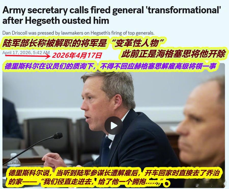 图1:今天美ABCnews这篇报道有点意思;图2:在海排长可能替特朗普打伊朗“背锅”的背景下,美国国会对就“五角大楼权利游戏”质询陆军部长,其中显然与最近民主党人要通过国会弹劾海排长有关。感觉38岁的陆军部长是“童言无忌”,即海排长把一位致力于陆军“大军改”四星上将提前解雇了。