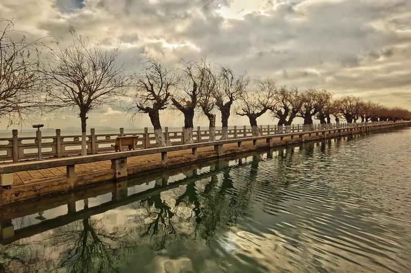 被云南滇池惊艳了!暮春时,这里天朗气清、湖光澄澈,湿地植被旺盛,水鸟在其间自在翱翔,生态之美尽显。 初春的滇池畔也别有一番风情。海埂大坝上大片郁金香热烈绽放,花瓣饱满,在微风中轻轻摇曳。有游客以为是假花,走近才发现是真的,直呼好看。以前来这儿比较单调,如今郁金香和海鸥结合,丰富了不少。捞鱼河国家湿地公园里120万株郁金香连绵成“海”,粉红、金黄、紫色交织,宛如精灵,成为摄影爱好者的心头好。滇池,无论何时都有着让人惊艳的魅力。