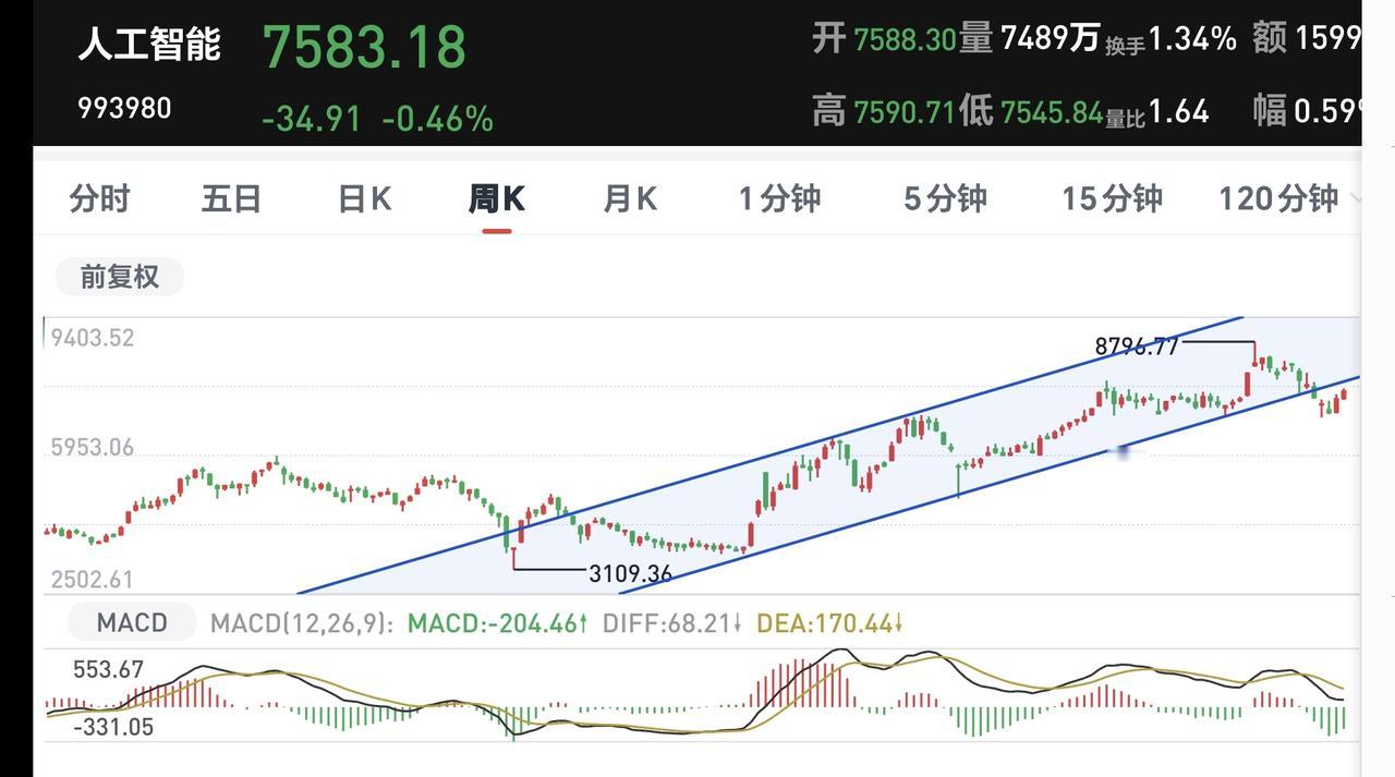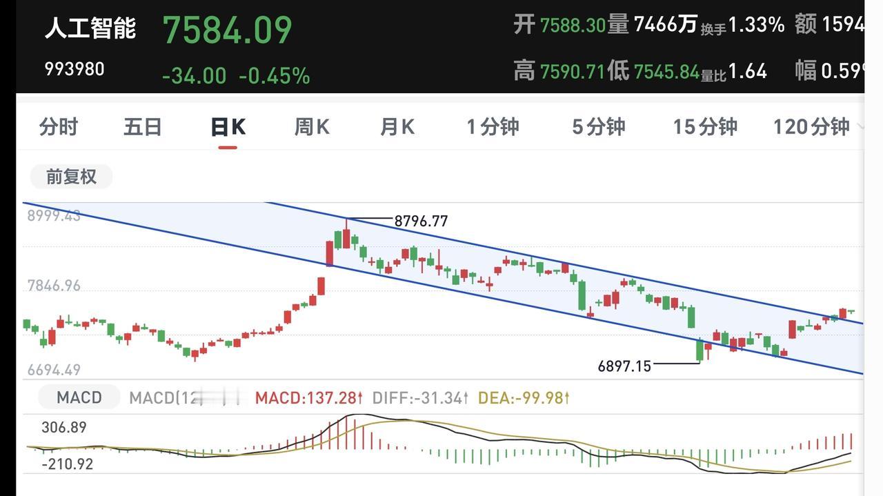 基金:创新药板块和人工智能板块应该怎么办 今天市场小幅度震荡,盘中最高4050点,最低4038点,上下只有12个点的幅度,下午盘中的震荡幅度会加大,不可能在这两个点位之间这样小幅度的震荡。 现在黄色线在蓝色线的上方,两条线之间的敞口比较小,黄色线也是上窜下跳,这表明了下午震荡幅度加大时候的方向不明。 现在五天线位置是4029点,盘中点位4047点,全部都是在五天线之上的震荡,只要能够保持在五天线之上增大,下午的方向选择大概率会向上。 整个股票市场,上涨1754家,下跌3649家,两市累计成交13168亿,相比于上一个交易日同期放量了1288亿,主力资金净流出421亿,今天放量幅度比较大,有放量滞涨的嫌疑,主力资金也有高位逃跑的可能性。 主力资金净流入最多的三个板块是:5G板块,智能家居板块,电子板块,主力资金净流出最多的三个板块是:蓝筹策略板块,国企板块,esg板块。 整个市场上涨幅度最大的三个板块是:Cpo板块,通信板块,双创50板块,下跌幅度最大的三个板块是:医药板块,创新药板块,医疗板块。 创新药板块今天大跌,盘中估值下跌了1.80%,持有人数在所有板块当中排名第12位。 创新药板块日线级别和周线级别都处于下跌通道中,距离下跌通道上轨线的位置都不远,近期观察能不能上涨突破这个下跌通道的上轨线,如果能够有效突破这条上轨线,就可以考虑要不要进场。 人工智能板块今天上涨,盘中估值上涨了1.73%,是连续第二个交易日上涨,持有人数在所有板块当中排名第11位。 人工智能板块昨天上涨突破了日线级别下跌通道的上轨线,今天是在下跌通道的上方震荡,近期观察这个突破是不是有效突破,如果是有效突破,就可以考虑要不要进场。 人工智能板块周线级别处于上涨趋势破位中,本周的上涨并没有能够重新回到原来的上涨通道内,长线的人还需要继续观望。 现在黄色线与蓝色线的敞口已经扩大,下午指数向上的可能性大于向下的可能性,但高位放量滞涨是一个风险,排除消息面的影响,下周有震荡是大概率事情。 成交量与市场的指数需要相匹配,昨天市场指数大幅度上涨,成交量是萎缩,这样上涨的持续性就不强,今天指数小幅度震荡,但成交量大幅度增长,这也是不匹配的表现,事出反常必有妖,是大涨还是大跌,现在不能确定,需要继续观望。 大家帮忙评论点赞,转发和分享,谢谢大家的支持。 大家帮忙评论点赞,转发和分享,谢谢大家的支持。