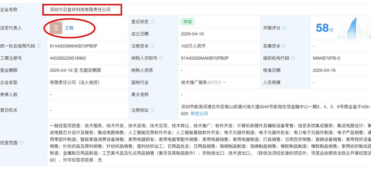 突然!王腾落子深圳!天眼查App显示,近日,深圳今日宜休科技有限责任公司成立,法定代表人为王腾,注册资本100万人民币,经营范围包括智能家庭消费设备销售、家用电器研发、家用电器零配件销售、家用电器销售等。股东信息显示,该公司由北京今日宜休科技有限责任公司全资持股。 北京深圳双城布局,看来王腾对睡眠科技赛道信心十足,所以才将饼越摊越大,你们觉得王腾这次创业最终会大获成功吗?
