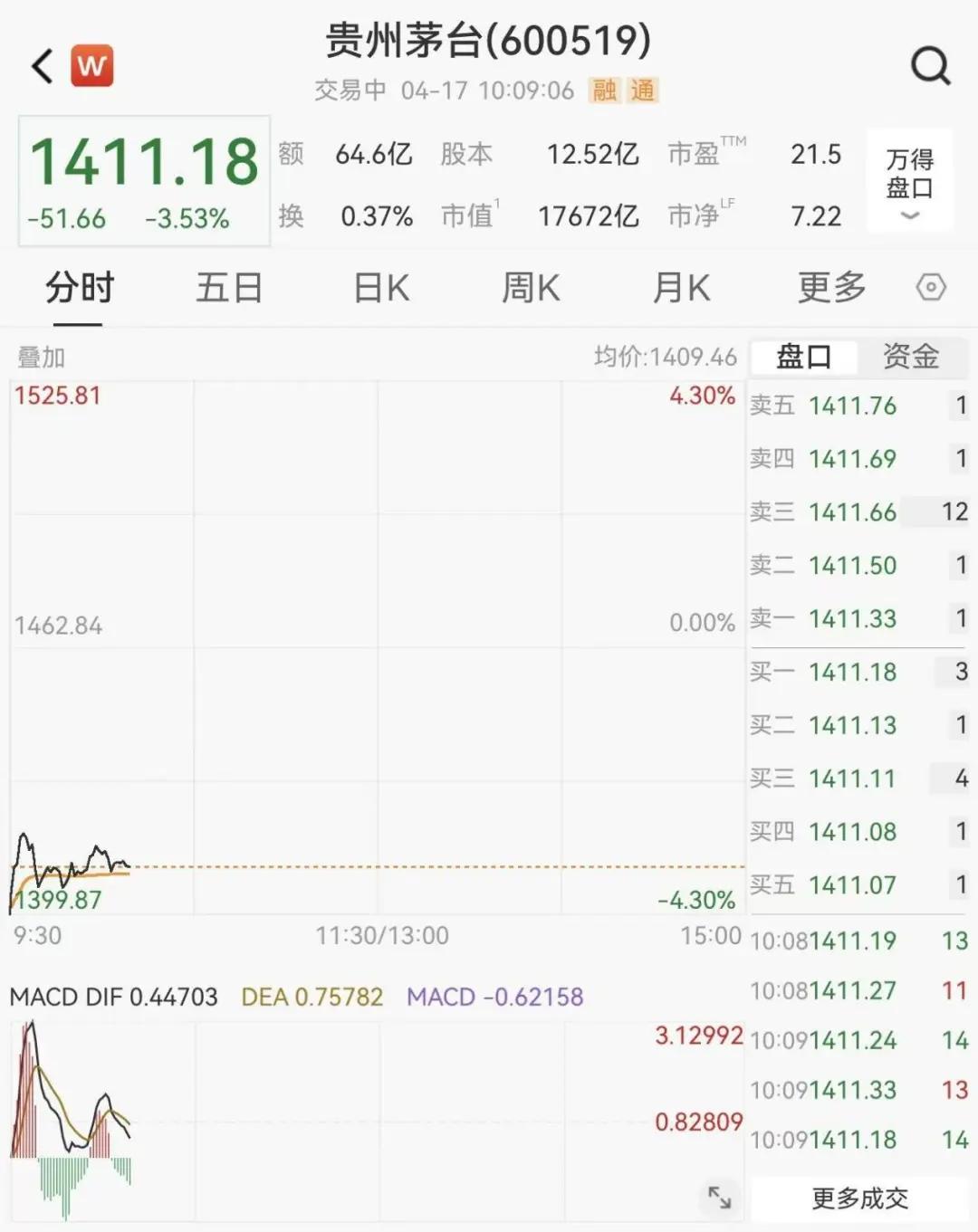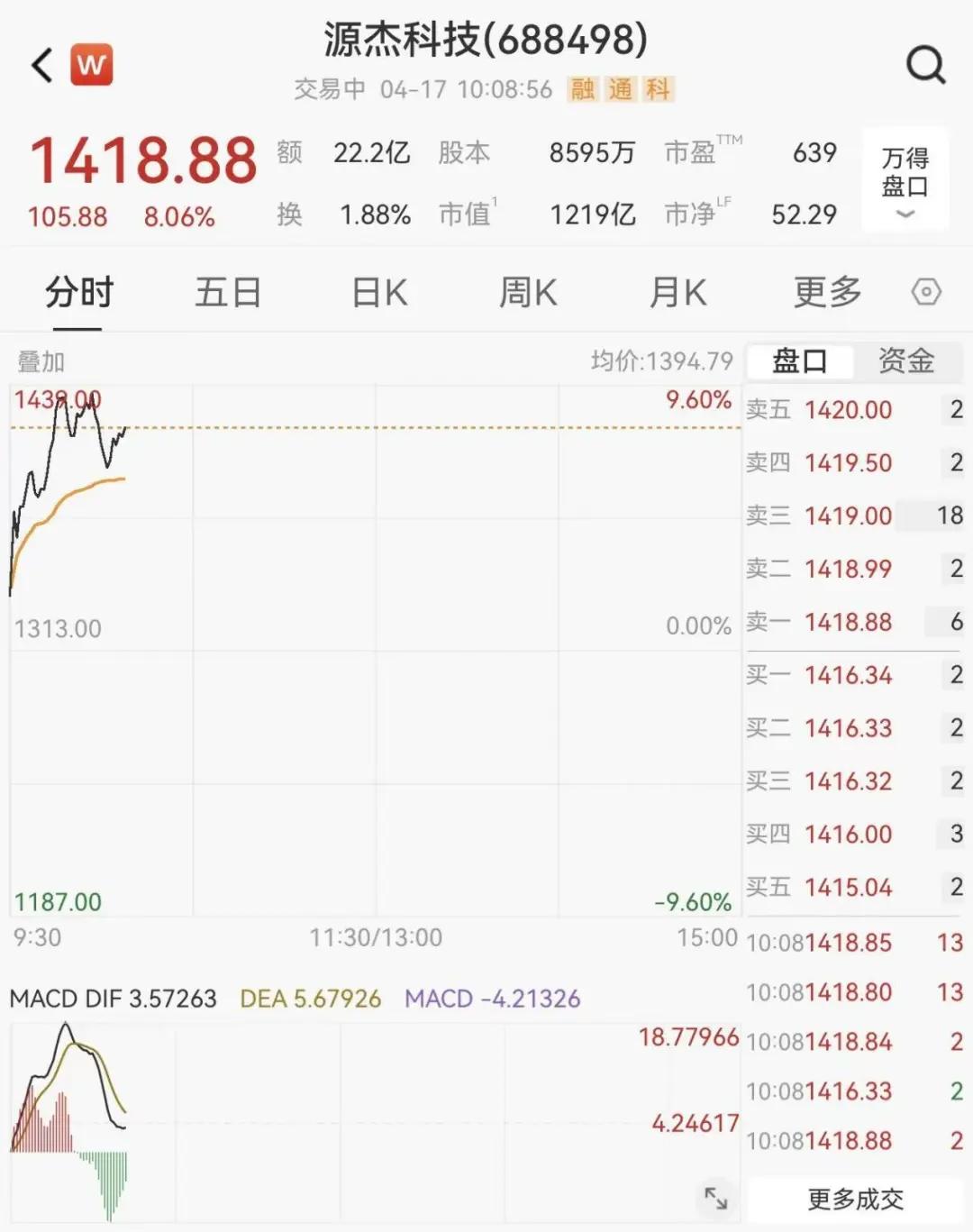 见证历史,A股新“股王”诞生,超越茅台! 4月17日一大早开盘,就见证了一个历史时刻,源杰科技股价大涨9%,股价直冲1433元,而茅台开盘跌4%,触及1400元关口。由此,源杰科技股价超过茅台,成为A股新“股王”。 茅台股价大跌,是因为昨晚发布了2025年财报,营收和利润双降,这是上市25年来首次。交出这样一份业绩,股价下跌太正常。然而,作为白酒之王,茅台业绩都撑不住,那直接影响到整个白酒股下跌。 新“股王”源杰科技是干什么的?这是一家半导体企业,虽然规模不大,但发展特别快。2025年营收大涨138.50%,净利润扭亏为盈。源杰科技自2024年9月以来,股价涨了1500%,非常夸张。 不过,茅台走向神坛是迟早的事,看看美国,股价高的都是高科技企业,根本没有白酒这类消费品的身影。对于我国来说也是一样的,未来的发展方向就是高科技,向高端制造业转型。 所以,除了源杰科技,股价前五名中,还有寒武纪、中际旭创和沐曦股份,这三家都是半导体,智能装备制造企业。这才是正确的发展方向,才是正常的股市。