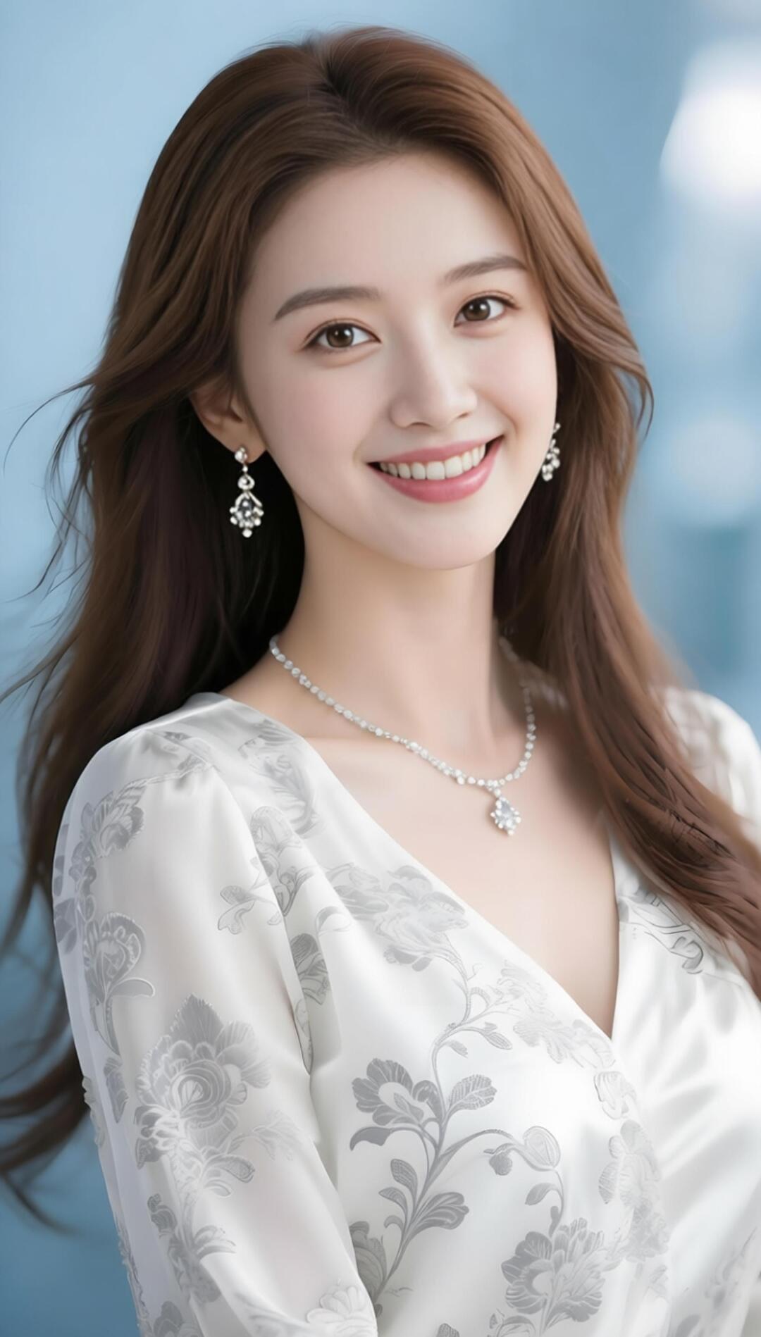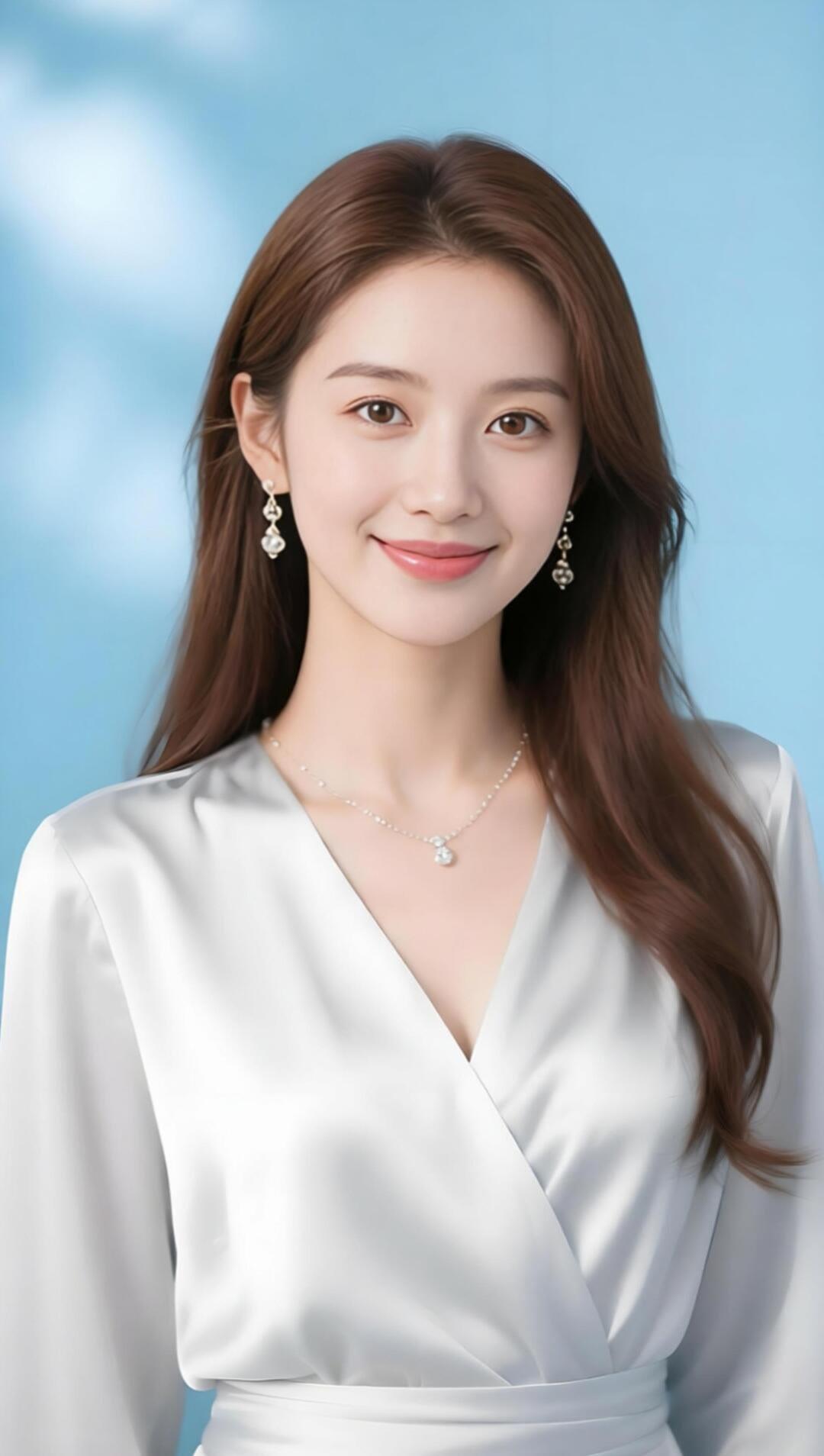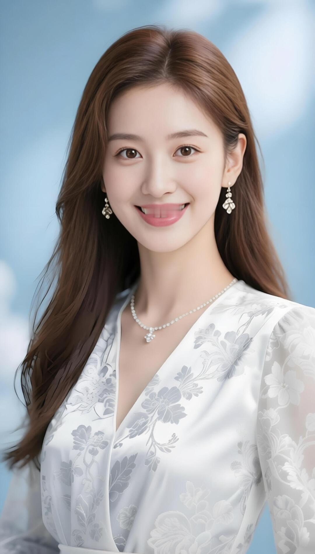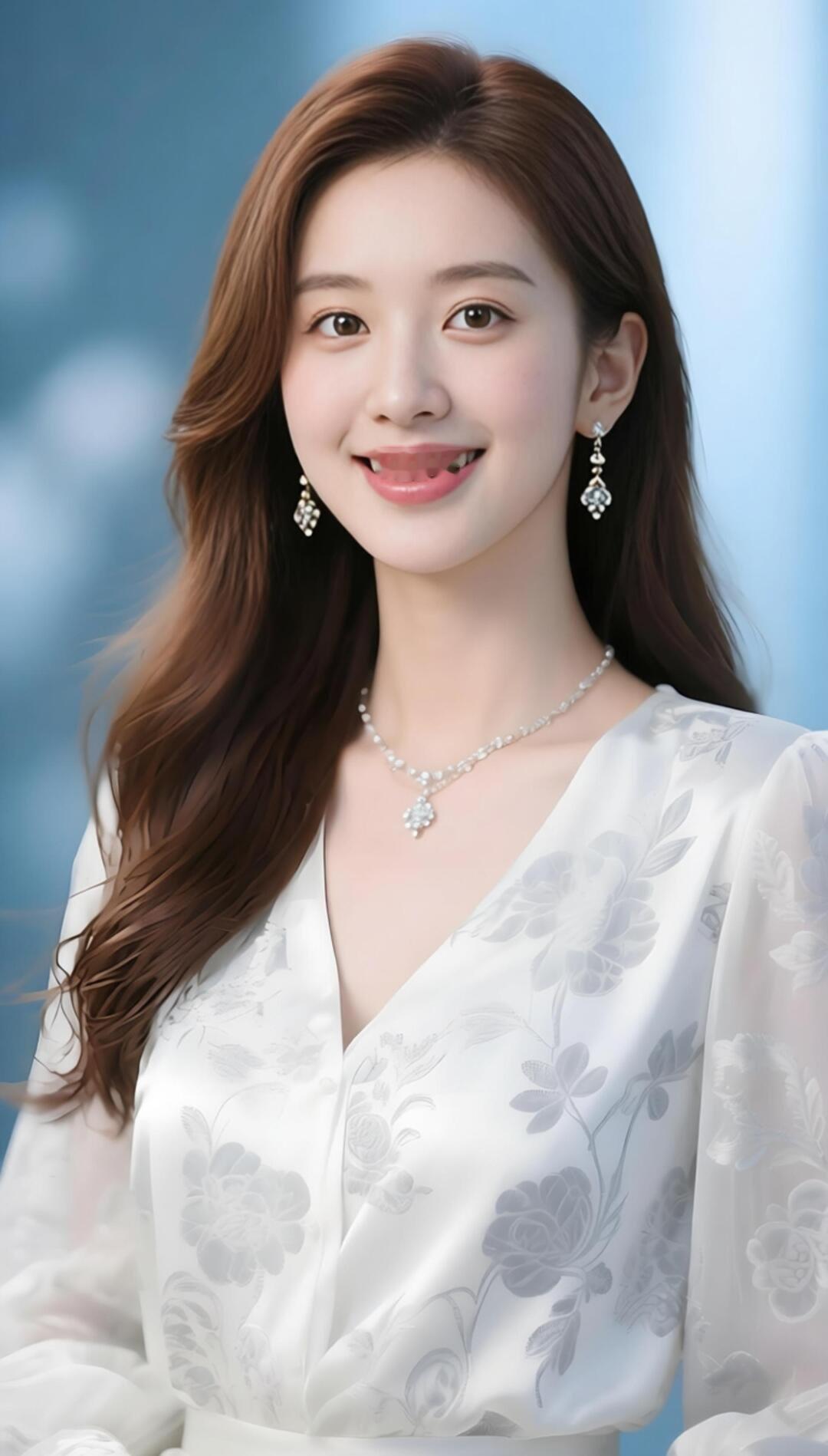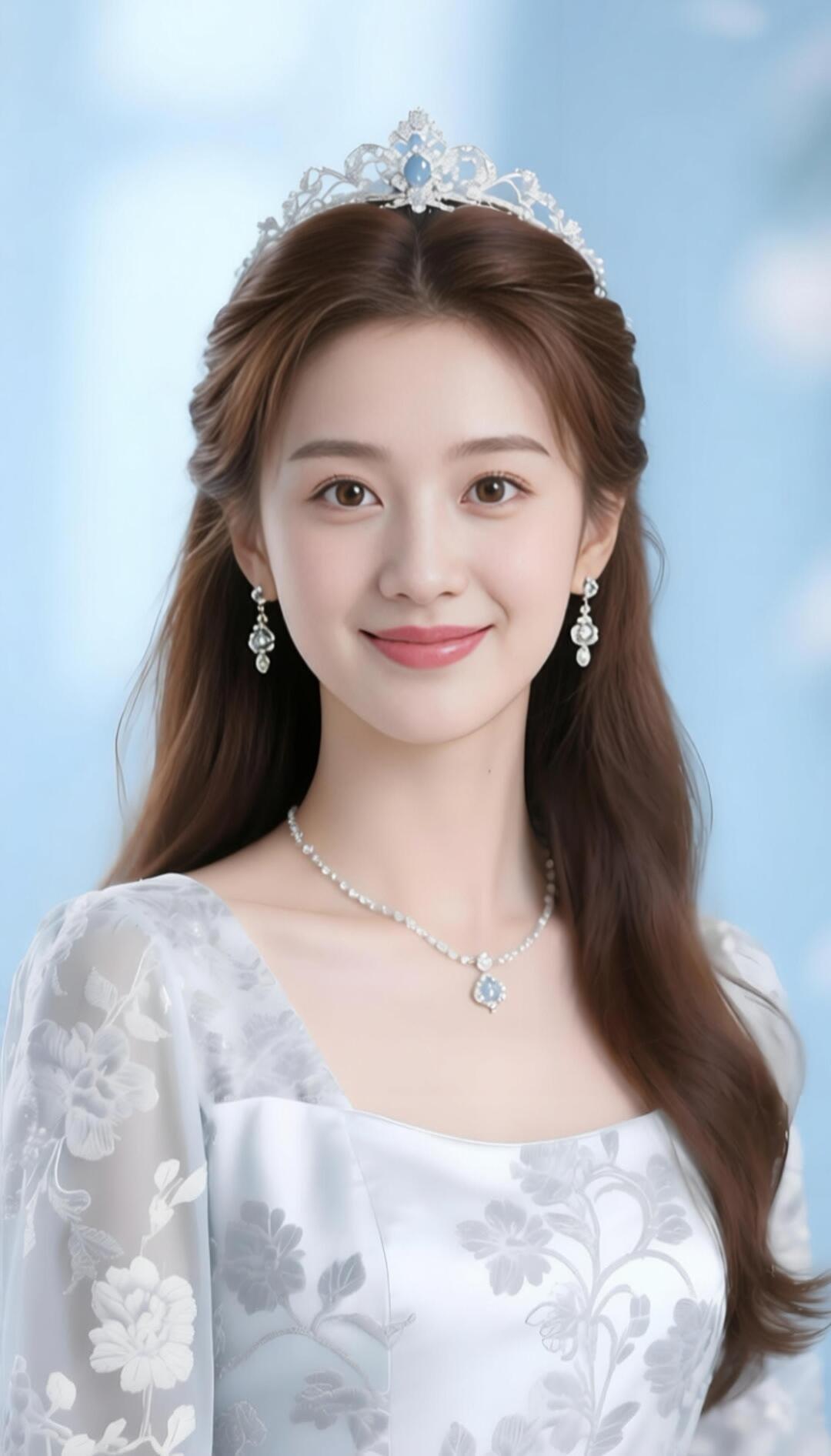 温柔古风少女,蓝白相间华服,发间花饰点缀,宛如仙子降临。