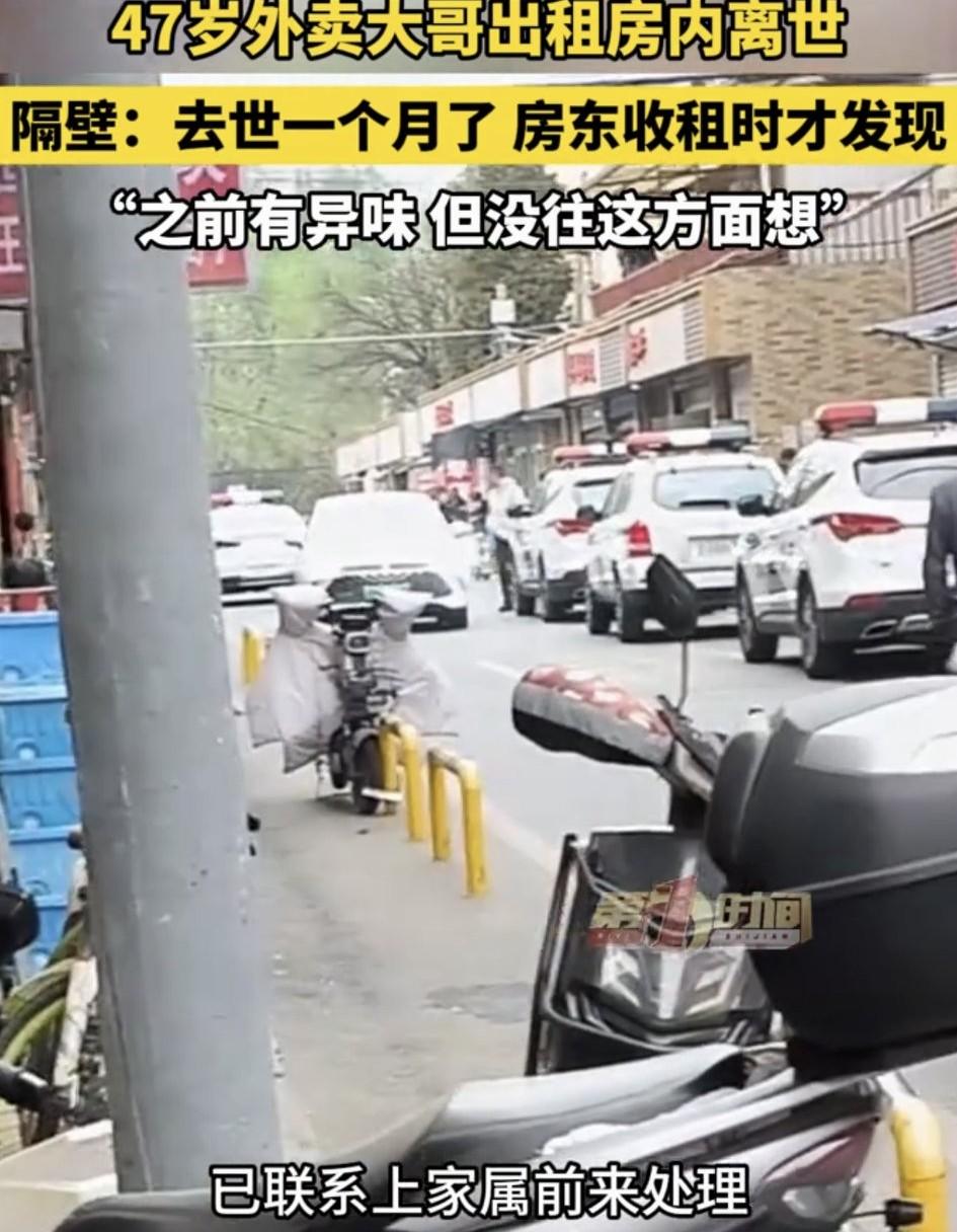 痛心!近日北京,一名47岁外卖大哥在出租屋内孤独去世,直到房东收租才发现人已经没了。 这个外卖大哥是从老家来北京的,平时独来独往的,邻居们大多不知道他的全名,只知道他每天早出晚归,不管刮风下雨,从来没耽误过跑单。 大家都只当他是个默默打拼的普通人,但谁也没有想到,他会以这样孤独的方式离开。 4月14号那天,房东没有收到这个外卖大哥的房租,打电话也只有关机的提示音,他放心不下,就过来看看。 房东刚敲了几下门,就闻到了一股奇怪的异味,好像是什么东西开始腐烂的味道。 房东心里一下就沉了,赶紧打开了门,进去之后他整个人都傻了。 外卖大哥安安静静地躺在床上,早就没了呼吸,房间里的一切都保持着原样,仿佛时间在他离世的那一刻,就已经静止了。 房东吓得赶紧报了警,警方过来勘察后,推测他大概率是心梗突发走的,而且已经离世快一个月了。 住在隔壁的马先生后来跟人说,前几天他就闻到过这股怪味。 当时他还以为是哪个邻居家的垃圾桶没清理干净,也没往心里去,现在想想,心里又酸又悔。 有人说邻居冷漠,可其实不是,这几年大家都是关起门过自己的日子,各忙各的,互不打扰,谁也不会想到,一扇门背后,会发生这样的悲剧。 最让人心里难受的,不是他的离世,而是他离世后整整一个月,竟然没有一个人发现。 47岁正是上有老下有小的年纪,他从老家来北京拼命跑单,无非就是想多挣点钱,也许是想给老家的房子翻修一下,也许是想给孩子凑点首付,这些朴素的期待,再也实现不了了。 网友们看到这件事,都忍不住感慨,有人说自己也是独居,孩子在外地工作,一年多都没怎么联系,特别害怕自己也会遇到这种情况。 还有人疑惑,一个月的时间,他的家人就从来没想过给他打个电话,问问他在外面过得好不好吗? 心梗发作的时候,是有短暂自救窗口的,可对于常年奔波、习惯硬扛的外卖员来说,身体发出的胸闷、出冷汗的预警,只会被当成是跑单太累了,躺下休息一下,可这一躺,就再也没能起来。 有人会问,房东有没有责任?邻居有没有责任?其实没有。 房子没有安全隐患,是他自己身体原因离世的,房东不需要承担责任;邻居闻到异味没多想,也是普通人的正常反应,没人有义务每天去关注邻居的动静。 真正让人遗憾的,是他和这个世界的断联,没有朋友,没有家人的牵挂,就像一颗孤独的尘埃,来到这座城市,又悄无声息地离开,连一句告别都没有。 现在很多人都在为了生活奔波,总觉得忙完这一阵就好了,总觉得赚钱最重要,却忘了,家人之间的联络,朋友之间的关心,才是支撑我们走下去的力量。 我们总说“互不打扰是礼貌”,可有时候,过分的互不打扰,就变成了冷漠,变成了遗憾。 这个外卖大哥的悲剧,不是个例,它藏着很多独居者的无奈,藏着很多人被生活磨淡的情感联结。 警方后来联系上了他的家人,他们赶来处理后事,不知道那一刻,他们心里有没有后悔,后悔没有多给他打一个电话,多关心一下他的近况。 一个人在外面打拼,不容易,可再不容易,也别忘了和家人保持联系,也别忘了好好照顾自己。 这个世界上总该有人惦记着你,总该有人知道你是否平安,是否安康。 而那些被我们忽略的牵挂,那些没说出口的关心,也许就能避免一场这样的悲哀。