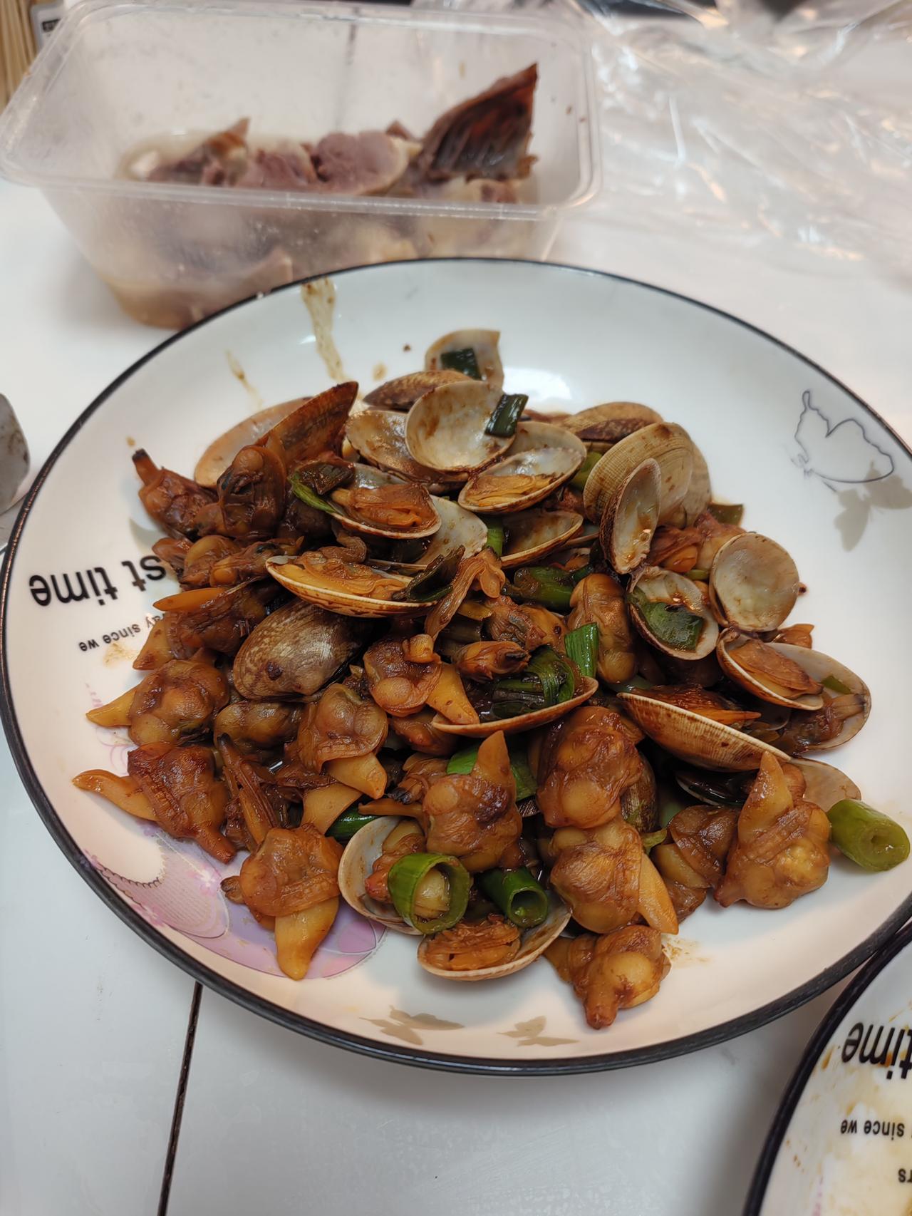 菜园里晒了三个小时太阳,下午三点回家。 路过金钟早市,还有摊位。买了二十元白蛤蜊,麻蛤蜊。路过新中村菜市场,又在菜市场买了莆田豆腐干,海蛎子,干豆腐。莆田豆腐好吃,贵点。海蛎子二十五一小袋,在汕头吃过海蛎煎,一次自己做海蛎煎。又买了一点盐水鸭。路上还买了一个网纹瓜,花了十二元。 到家都傍晚四点了,不去别处看花了,看看我们小区的花吧,骑车绕了小区一圈,樱花,桃花,李花,丁香花开的真好。可惜,只开半个多月,春天就要过去了。好花不常在啊。不能伤春啊,开心接受每个季节。回家做饭吧,让老伴吃顿现成饭。自从我一上班,晚饭天天吃现成的,我只要一出去挣钱,待遇立刻提高,这老伴对我可殷勤了,给我做饭吃,还给我洗水果吃。哈哈,只要我不工作了,立刻家务活都是我的了。 焖米饭,炒蒜薹,炒蛤蜊,大葱拌豆腐干,海蛎煎。尤其我做的海蛎煎,红薯淀粉,海蛎,放点盐,葱花,用铝饼铛煎的,放点酱油,香油,味道鲜美。要是再放点辣椒油,醋,更好吃,我忘记放醋了,那也好吃。 上闹表,明天可不能迟到。明天坐地铁上班,要万无一失。上午监考,下午没事,路过儿子家,去看看我的俩孙女,给我孙女们买点水果吃。二宝要棒棒糖。大姐语文考的好,老师奖励一颗棒棒糖,姐姐没给二宝吃,二宝要棒棒糖。孩子们对老师奖励的礼物太重视了,代表老师的认可啊。孩子们都有荣誉感。 晚安。