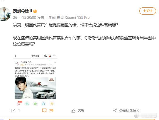 他是想抨击某款车的营销策略,结果评论区都是某艺人的粉丝....
