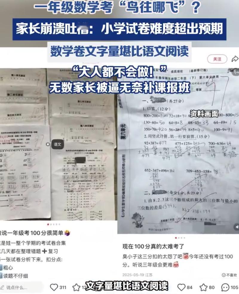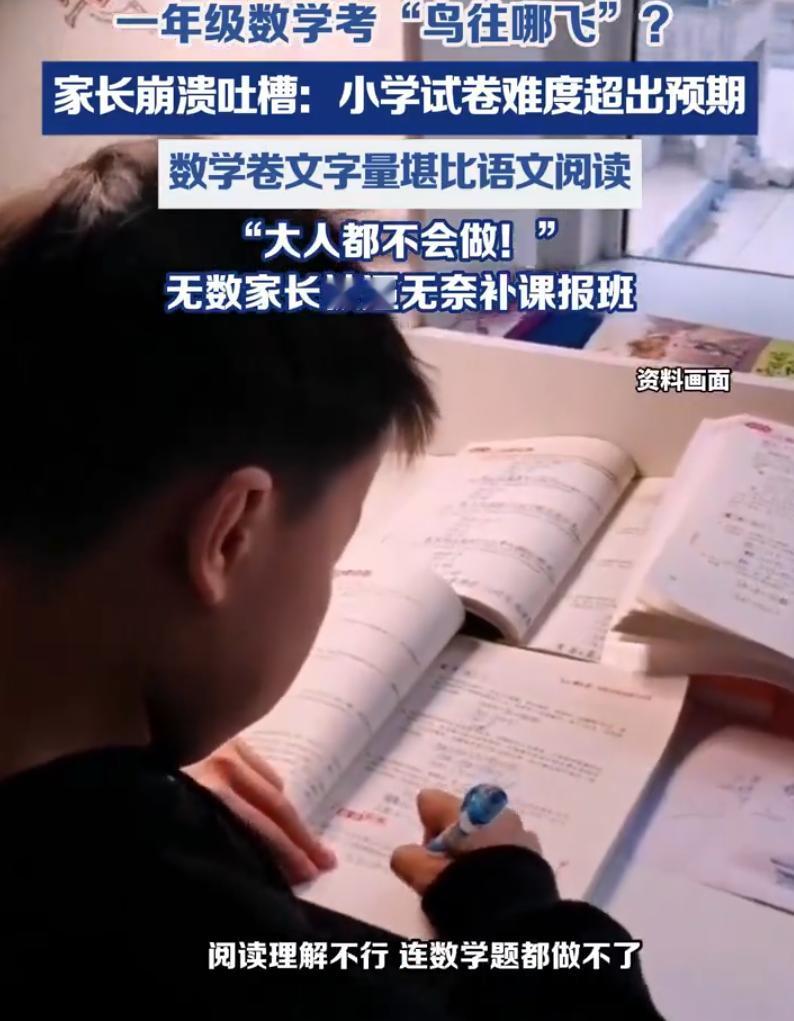 这考的是语文还是数学?浙江杭州,一位家长在网上吐槽,她在家里辅导一年级的孩子写作业,可看到试卷上的数学题目却懵了,一道数学题里全都是文字,想要填答案,还得先做好阅读理解,家长直言:我小时候根本没有这么复杂 她的吐槽很快引发了大量家长的共鸣。很多人晒出自己家孩子一年级的数学题,情况差不多:题目长、信息多、拐弯抹角,还有大量跟计算本身没什么关系的生活常识和情境描述 比如有题目问“鸟的方向”,需要孩子先理解方位词,再结合图上鸟的朝向做判断。有的题目考的是“谁比谁多、谁比谁少”,但前面铺垫了一大段关于水果、玩具或者小朋友之间对话的场景。还有的题目,干脆就是一个小故事,读完才能知道到底要算什么 不少家长直言:这不是考数学,这是考阅读理解。阅读理解能力跟不上,连数学题都读不懂,更别说做对了 更让人头疼的是,很多题目里还故意加入了干扰项。比如给一堆数字和图形,其中有些条件根本用不上,孩子得先学会筛选信息。对于一年级的小朋友来说,光是读完题目、理清“到底要我干嘛”,就已经很吃力了 有家长说,自己孩子明明会算数,10以内的加减法没问题,可一碰到这种长题就发懵。不是不会算,是看不懂题。时间一长,孩子对数学的兴趣都下降了,一看到卷子就紧张 这一现象背后,其实反映了近些年小学低年级数学命题的一个明显变化:题目越来越“生活化”“情境化”,强调数学在真实场景中的应用。初衷是好的,希望孩子不只是学会计算,更要学会用数学思维解决实际问题 但从实际效果来看,这种出题方式对一年级孩子来说,门槛确实不低。六岁的孩子,识字量有限,阅读速度慢,逻辑思维还在发育阶段。把数学题做成小作文,表面上是考数学,实际上第一关是考语文,第二关是考逻辑,第三关才是考计算 说实话,数学题里带点文字描述、设置一些生活场景,本身不是问题。但如果过于追求“情境化”,忽略了低龄孩子的认知水平和阅读能力,那就有点本末倒置了。一年级的核心任务,应该是帮孩子建立数感、培养对数学的兴趣和信心。而不是一上来就用大量文字和干扰项,把数学变成一场阅读耐力赛 换个角度想,如果一个孩子本来挺喜欢数学的,结果每天面对的都是读起来很费劲的题目,慢慢地,他可能不是讨厌数学,而是讨厌“读题”。这才是最可惜的地方 对此,你怎么看呢?