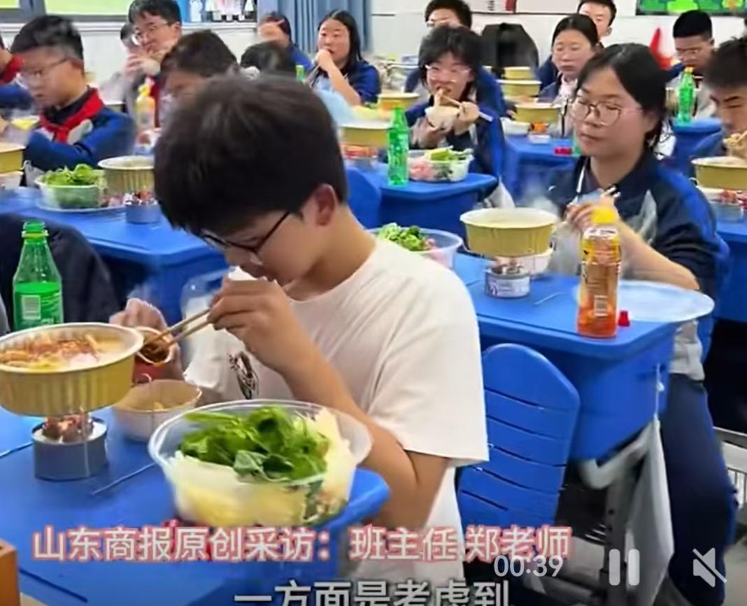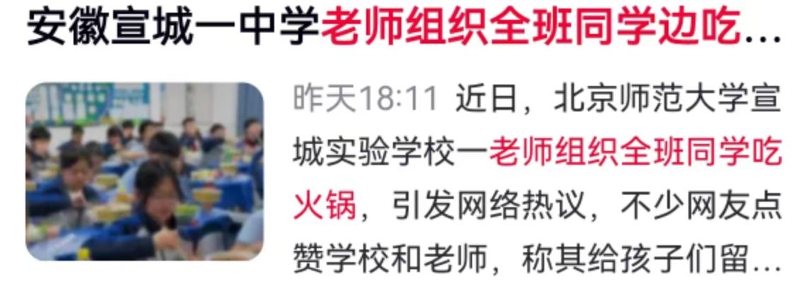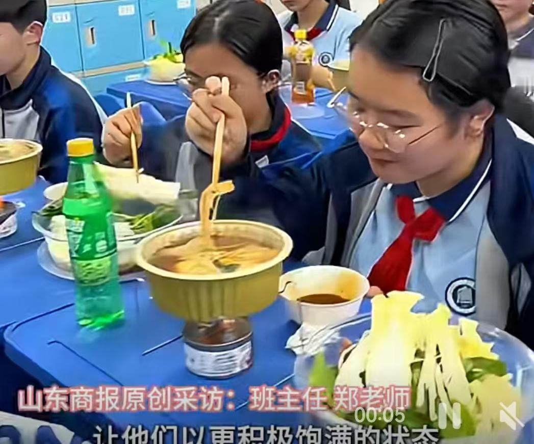 教室里白雾升腾,课桌上不见试卷,取而代之的是咕嘟冒泡的简易小火锅、大碗的肉菜和一人一瓶的饮料,大屏幕上正放着电影。这并非什么商业噱头,而是近日发生在安徽宣城北京师范大学宣城实验学校一个班级里的真实一幕。相关视频刚一上网,迅速斩获千万级播放量,这位策划活动的老师毫无悬念地被全网封为“别人家的老师”。 把明火和滚烫的汤底搬进堆满书本的教室,第一道绕不开的关卡就是安全。这场火锅局并非脑子一热的手工活,细节里藏着极高的警惕性。全班几十个小火锅,燃料全部选用了一次性环保油燃料罐,彻底规避了传统燃气罐的爆燃风险。班主任没有当甩手掌柜,多名科任老师全程在过道里盯防,开吃前学生统一接受了安全操作指导。食材这条线上更透着巧思,洗菜、切肉、分装这些耗时费力的脏活累活,全由家长们在幕后包揽,确保了入口的东西干净卫生。 校方对这波操作给出的定调非常明确:学生近期表现优异,这是他们应得的奖励。翻看这所学校的日常节拍,这种大规模的集体放松并非偶然的纵容,该班级保持着每月一次集体活动的频率。校方直言不讳,这种安排就是对当下减负政策的具象化落地,旨在帮孩子缓解焦虑,顺便把班级凝聚力这根弦拧紧。 评论区里两极分化的声音,恰恰折射出现实教育的复杂切面。点赞者眼眶发热,觉得在重压的应试环境下,这样一顿热腾腾的火锅能给孩子留下一辈子温暖的回忆,甚至有人顺带怀念起老北京豆汁儿那种带着地域烙印的校园烟火气。担忧者则如临大敌,紧盯“安全”二字不放,觉得几十个未成年人围着明火就餐,哪怕只有万分之一的风险也不该去冒。 跳出情绪的对立,这盆教室里的火锅其实端出了一个极具现实意义的家校合作范本。现在的中学生面临的心理压力是个不容回避的客观事实,单靠班主任在班会上干巴巴地讲“放松心态”收效甚微。这所学校把奖励具象化为一场吃播,同时把安全隐患通过“家长备菜、老师盯场、环保燃料”三方联动降到了最低。这种各司其职的配合,比单纯的指责或盲目的赞美更有价值。它至少提供了一种思路:在铁板一块的课业缝隙里,只要统筹得当,学校和老师完全有能力为学生撕开一道透气的口子,让学生在规矩与温度之间找到平衡。 以上内容仅供参考和借鉴