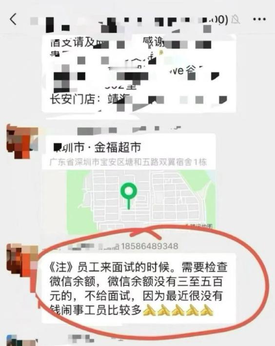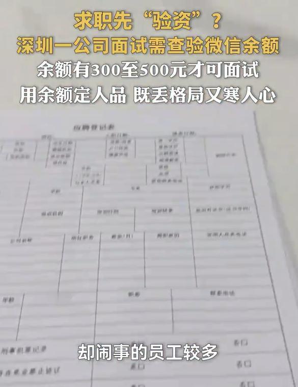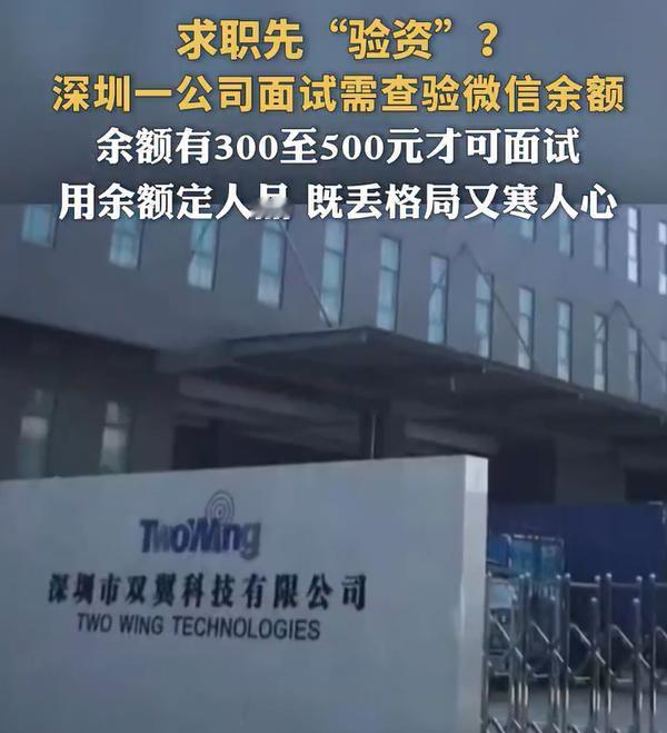 你凭啥查人家的微信余额?深圳一座讲究时间就是金钱、效率就是生命的城市。可偏偏有人,把“金钱”和“生命”这两个词,玩成了打工人最屈辱的模样。 坐标深圳坪山,这两天,一张求职聊天截图在网上炸了锅,看得人火冒三丈。不是嫌你学历低,也不是嫌你没经验,人家直接甩过来一个闻所未闻的要求:“验资”。 不是验公司账户里有没有钱发工资,而是验你微信里有没有钱!要求截图微信余额,余额有300-500元有资格参加面试。 一个打工人奔波在求职路上,找到了一份看起来还行的工作。正准备问问通勤、问问福利,HR那头不咸不淡地甩过来一句话:“记得把微信余额截图发过来。” 打工人一愣,以为自己听错了。是怕我付不起饭钱吗?是怕我手机没电吗? 对方解释得很“硬气”:最近没钱又闹事的员工比较多 这逻辑多霸道啊!因为没钱的人多还闹事,所以现在每一个来求职的老实人,都得先把自己的钱包翻个底朝天,以证人品清白。 我就想问一句:你被贼偷过,是不是以后进你家门的亲戚朋友,都得先搜身? 出来打工,卖的是力气、是时间、是本事,不是卖尊严!我兜里要是趁个百八十万,谁还顶着大太阳出来看你脸色?谁不是经济拮据才需要打工维持生活的,你们倒好,要用钱包余额来判定人家的工作能力和人品。 凡是面试时就让你感到生理不适、人格受辱又没格局的公司,趁早跑,跑得越快越好。因为那不是招工,那是选牲口!