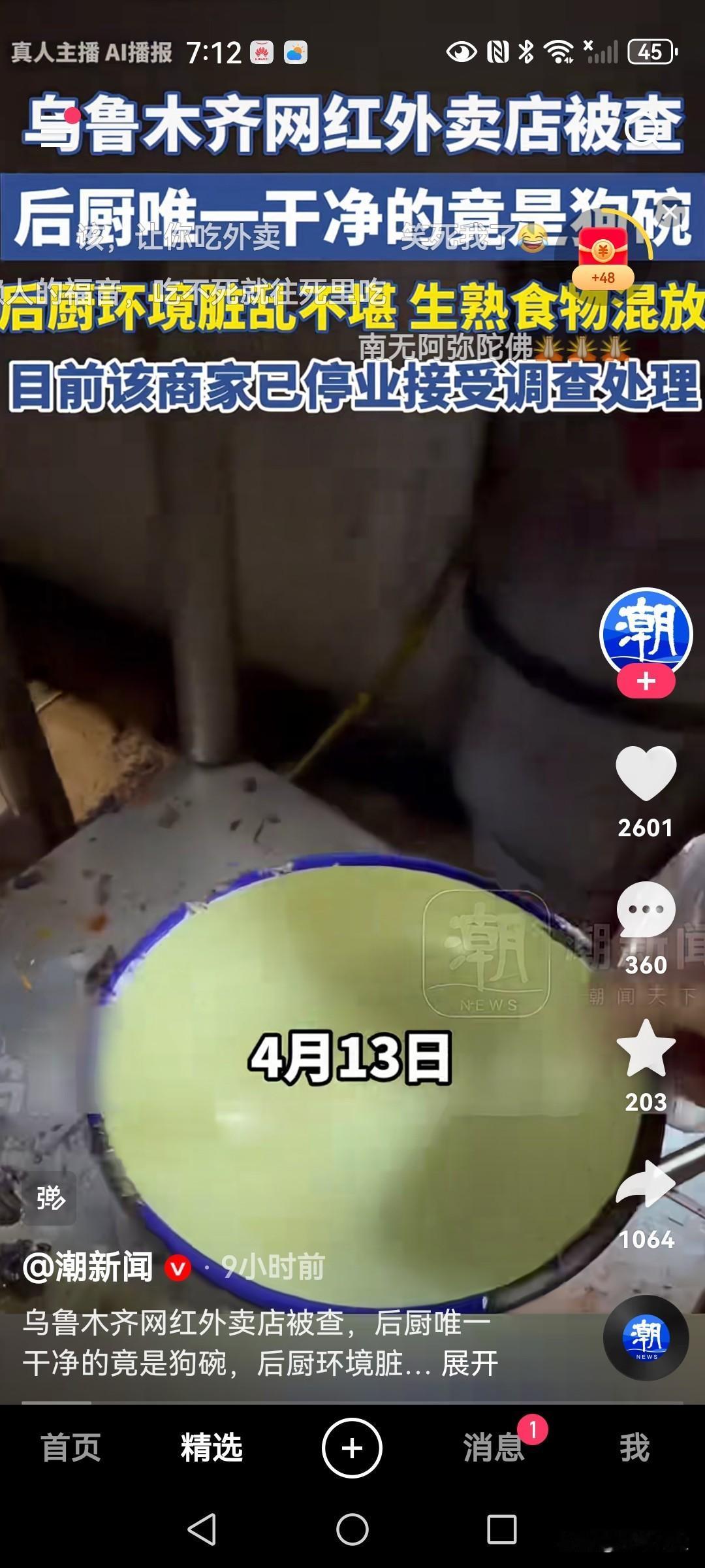 乌鲁木齐一家网红外卖店被查,不查不知道,一查吓一跳。这家店的卫生环境简直脏乱得不成样子,生熟食物胡乱混放在一起,后厨里唯一干净的物件,居然是狗碗!