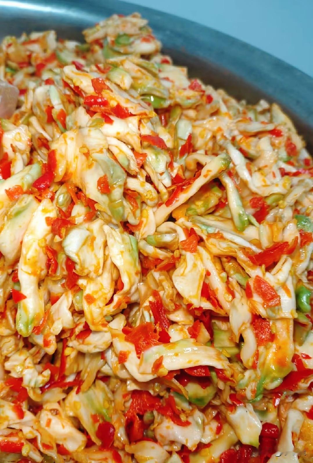 楼下早餐店免费小菜被我复刻成功!酸辣爽脆,朋友吃完直接打包走 每次去小区楼下吃早餐,我别的都可以不点,唯独他家免费的酸辣包菜丝,我是顿顿都惦记。 酸辣开胃、脆生生还带点回甜,早上胃口差、嘴里没味儿,夹一筷子立马精神,配粥配包子都绝了。 可前段时间老板突然说不做了,一问才知道,就因为这碟小菜太受欢迎,好多人吃完还不停续,成本扛不住,干脆换成了普通咸菜。 我心里一下空落落的,索性自己回家琢磨配方,试了好几回,终于做出和店里一模一样的味道。 现在只要朋友来家里吃饭,我必拌这道包菜丝,每次都被吃到光盘,临走还得装一盒带走,都说比外面卖的还好吃。 做法真的简单到离谱,5分钟搞定,天热没胃口的时候最适合。 食材与调料 包菜1颗(选捏着有点空隙的,比紧实的更脆) 调料:秦椒面2勺、白糖2勺、生抽2勺、白醋2勺、蚝油半勺、鸡精少许 这里一定要说下,秦椒面香而不辣,不是那种冲脑门的辣,老人小孩都能吃,平时拌凉菜、做油泼辣子都用它,香味特别正。 做法 1. 包菜去掉老外皮,洗净切掉中间硬芯,切成细丝,越细越入味; 2. 装进大碗,多放些蒜末,撒上秦椒面,烧点热油分3次泼上去,香味一下就激出来了,还不会泼糊发苦; 3. 放入所有调料,戴手套抓匀,多揉一会儿更入味。 刚拌好就能吃,想更脆更酸,就放冰箱冷藏1小时,口感直接翻倍。 现在包菜又便宜又新鲜,几毛钱一斤,我每次都买一颗拌一大盆,放冰箱能吃三四天。 配粥、拌面、夹馒头都香,大鱼大肉吃腻了来一碟,解腻又开胃,比啥都香。 你们早餐最爱配什么小凉菜?有没有像我一样,为了一口小菜专门研究配方的? 你们还有什么好的凉菜推荐呀?我试试爽口泡菜的做法 海鲜酱油可以代替生抽和老抽吗? 凉菜