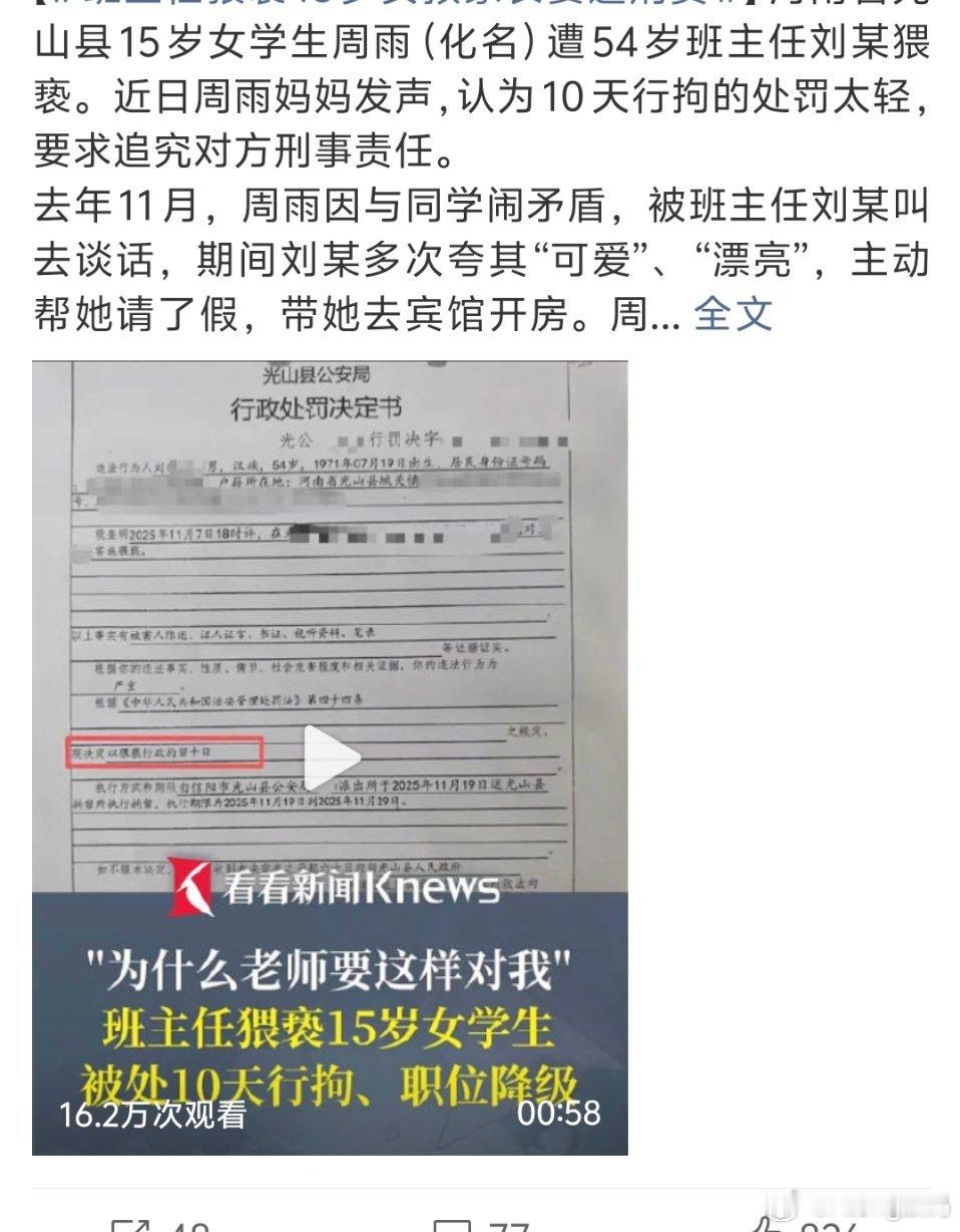 班主任猥亵15岁女孩家长要追刑责教师能干出这样的事证明0师德这份工作有更合适的人