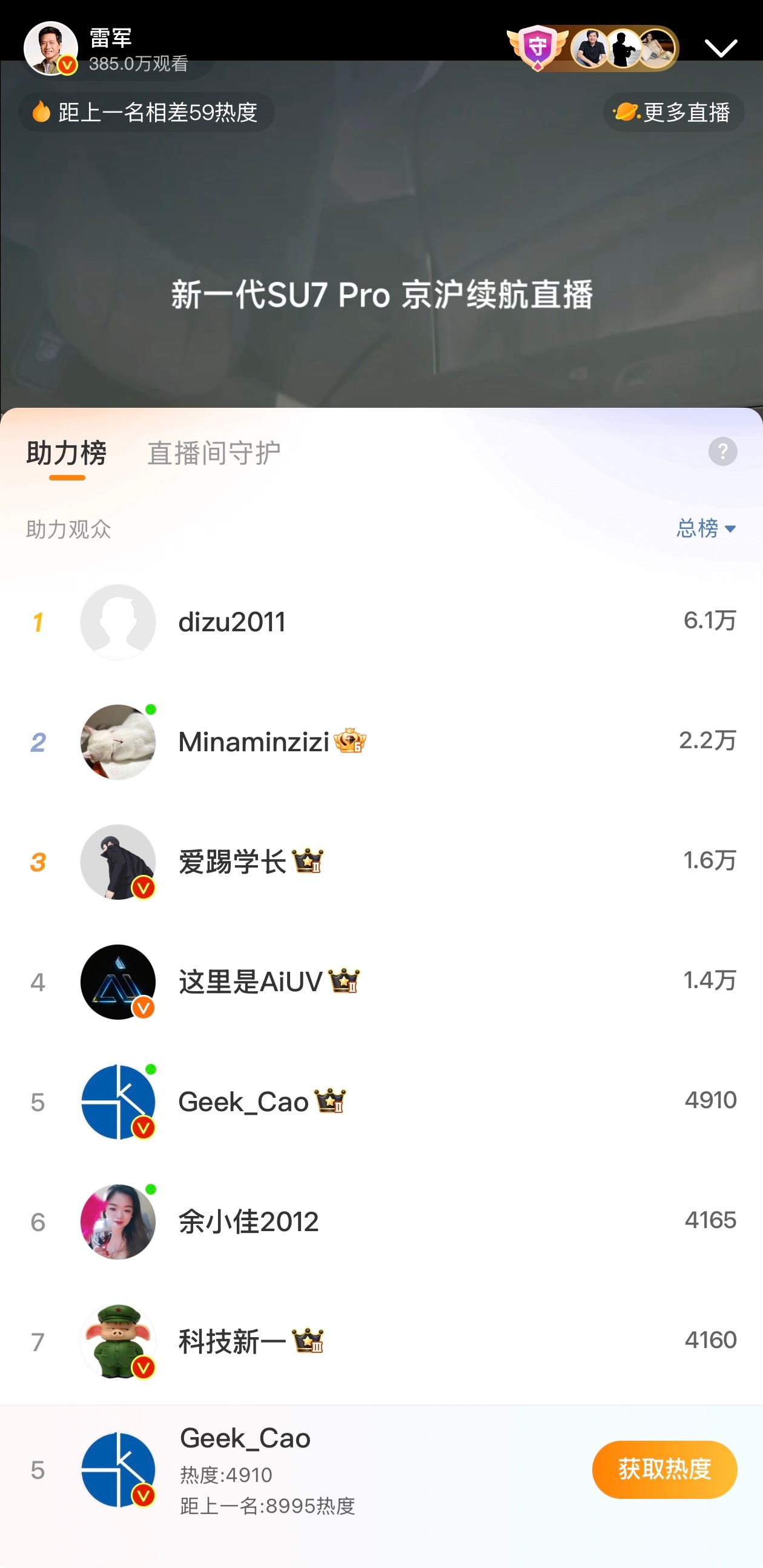 雷总直播挑战成功了新小米SU7北京到上海中间只充一次电,实际跑了13