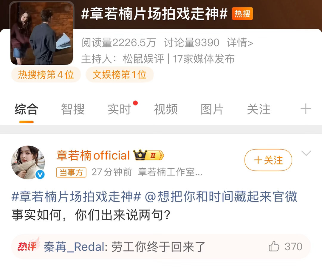 章若楠工作室喊话剧方章若楠工作室正面刚《想把你和时间藏起来》剧组。