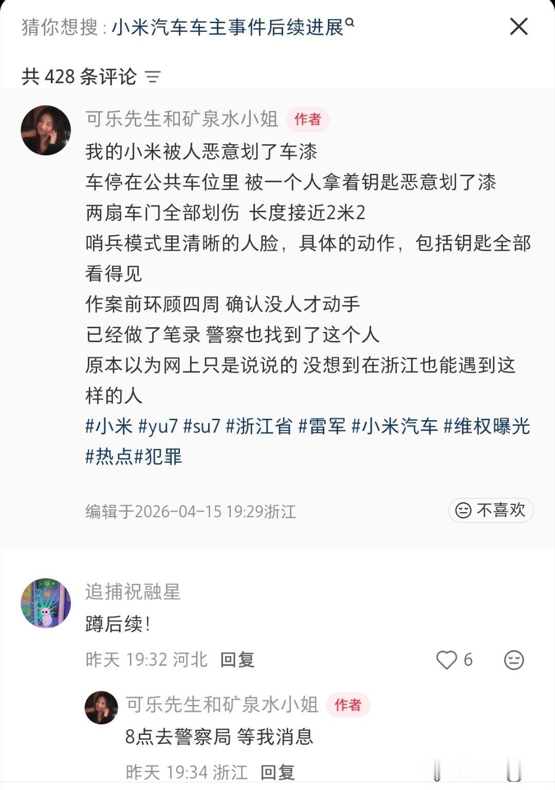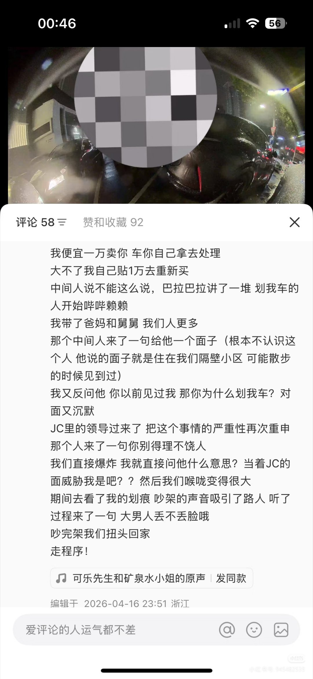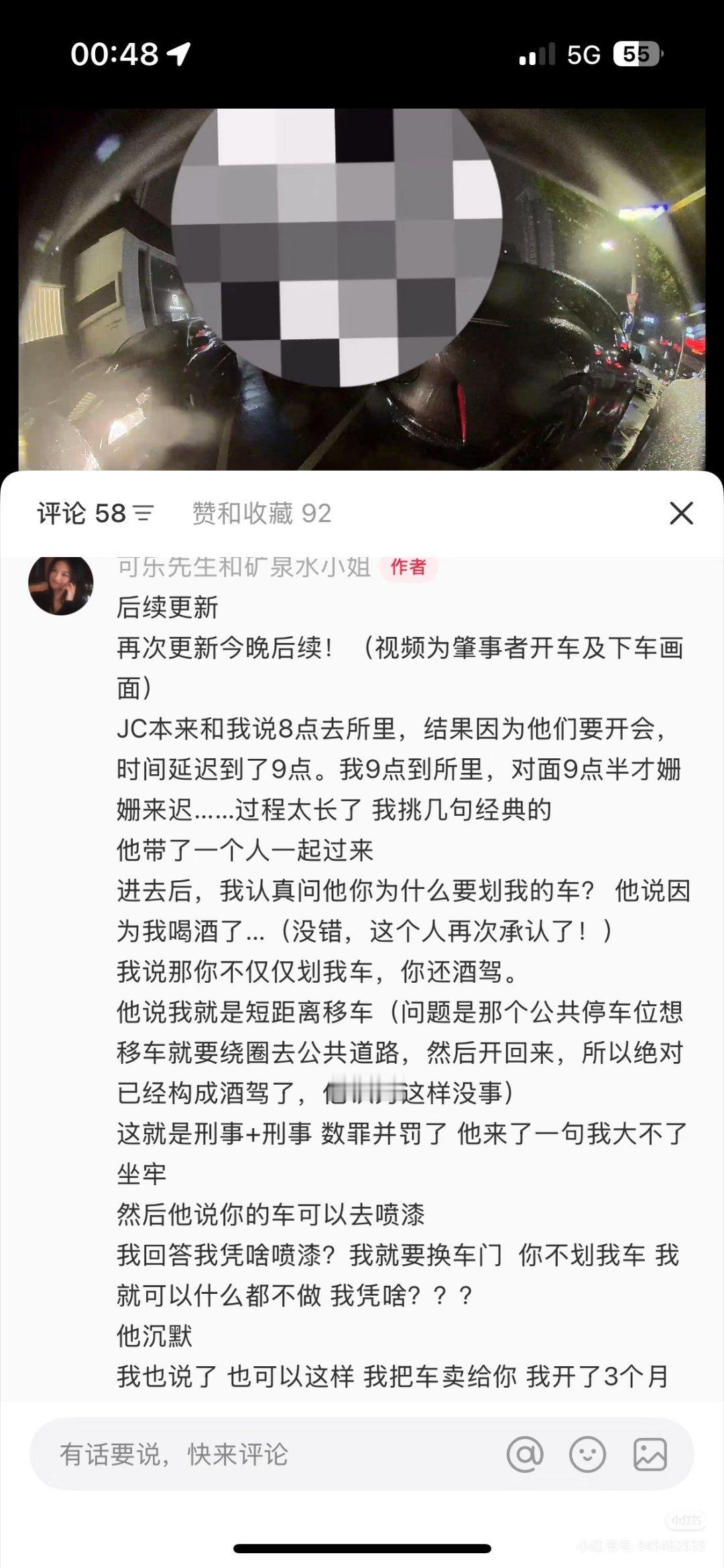 昨晚23点,车主更新了最新内容:询问为什么划车,肇事者推脱说喝酒了,没想到小米的哨兵拍下了肇事者驾驶车辆的视频。