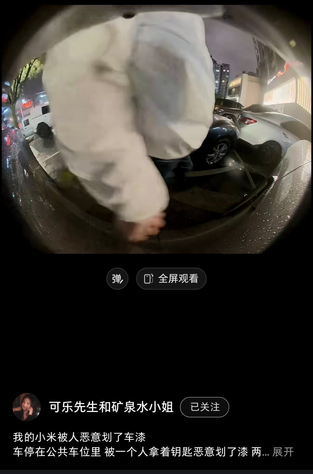 车主停在公共停车位,被一人用钥匙恶意划了2.2米的长度,肇事者的面容和使用的工具拍的清清楚楚。