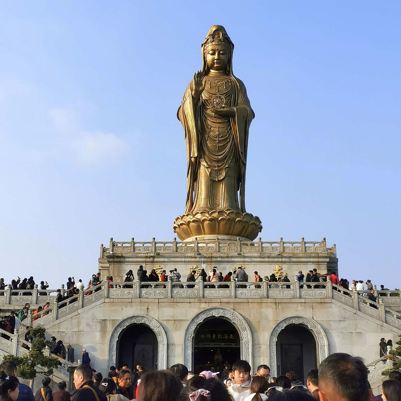 从宁波市区驱车百余公里,便抵达舟山普陀区,踏入素有“海天佛国”美誉的普陀山。作为中国佛教四大名山之一,这里是观音菩萨的应化道场,千百年来,慈悲与智慧的禅意,融进山海草木之间,让每一位来客都心生沉静。 在朱家尖蜈蚣峙码头登船,游轮破浪前行,不多时便靠岸普陀山。从码头前往普济寺,可徒步慢游,也可搭乘景区游览车,随心选择皆是风景。岛上古木参天,百年老树虬枝盘旋、形态万千,不少树木被爱心人士领养,相传这份善念能积攒福报,让山林多了几分温情。沿途古寺错落,红墙映着碧海,不愧是世人称道的“南海圣境”。 普济寺是祈福核心地,景区免费赠予三柱清香,自备的圆筒香不得入内,尽显对信仰的敬畏。寺内香火袅袅,游人香客手持香火,或轻声祈愿,或虔诚跪拜,庄重的氛围直击人心,浮躁的心境也随之平复。 辞别普济寺,沿着海边奔赴南海观音像。阳光下,金身观音矗立山海间,庄严又温润,登岛时远观的轮廓,近看更觉震撼,大批朝圣者在此驻足,心怀敬意。随后途经不肯去观音院、紫竹林,浅赏禅林美景,便踏着海风沿滩返程。 此行虽短,却满载治愈。山海相依,禅音绕耳,这场普陀之行,不仅是一场旅途,更是一次心灵的洗涤,让慈悲与安然常驻心底。
