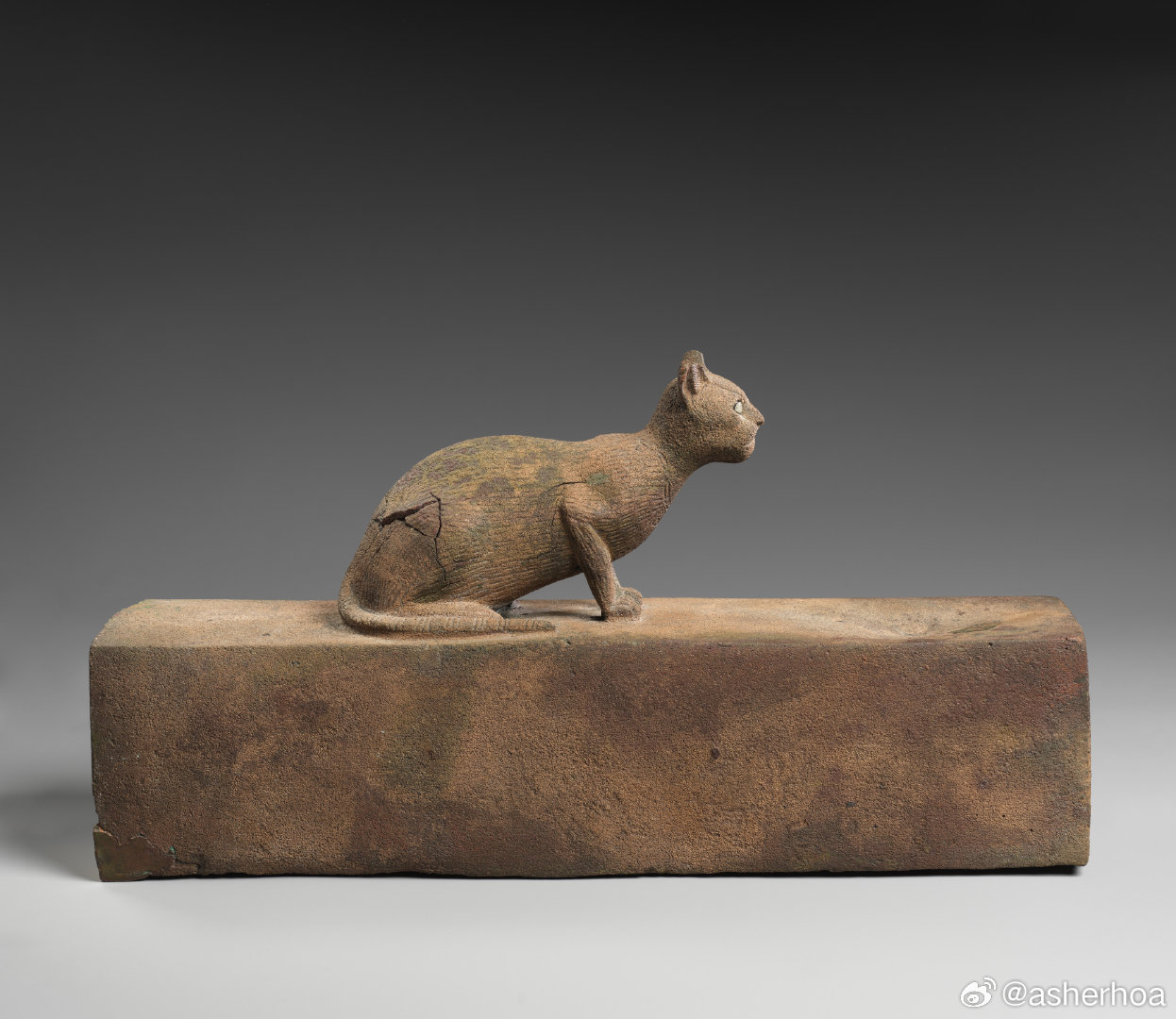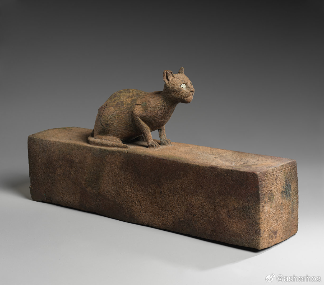 历史知识 博物馆奇妙之旅 公元前664年至前630年埃及出土的刻有芭丝特女神铭文的猫木乃伊铜盒,尺寸为长 34.7 × 宽 8 × 高 17.6 厘米。芭丝特(图9)是下埃及重要的女神,猫被视作她的化身,盒子上的猫似乎在守护这具特殊的棺椁,盒子正面刻着捐赠者的名字,而内部原本应该盛放了一具亚麻布包裹的猫木乃伊。美国大都会博物馆收藏。