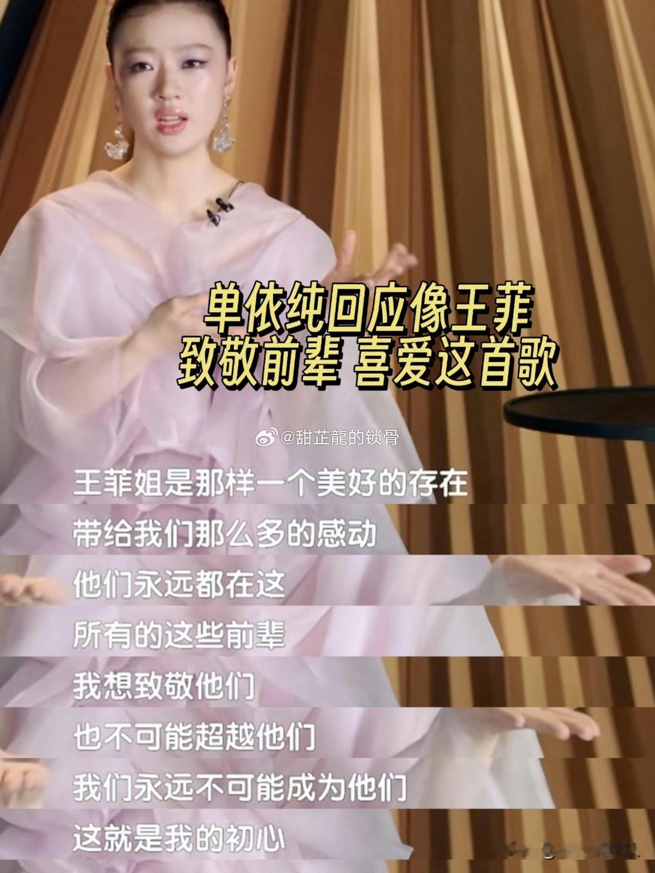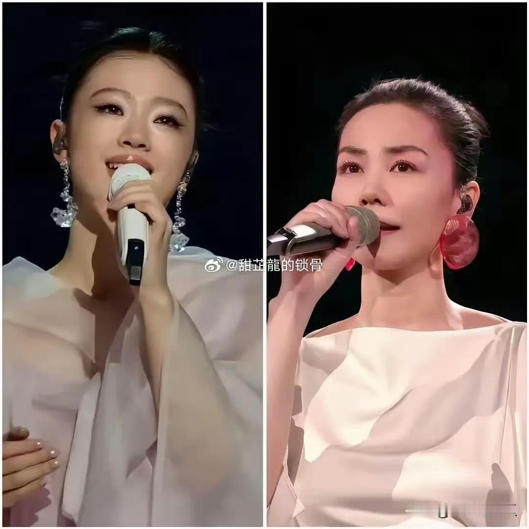 今天最意外的应该是王菲 因为一样的衣服,一样的发型,20年前的王菲不管是气场还是长相都全方位吊打单依纯,时尚感拉满,气场全开。 估计王菲自己都没有想到,她的超级粉丝单依纯一直致敬她,向她学习,却一次次把王菲的造型送上神座,真不知道单依纯到底图什么,她自己天赋异禀,做自己就很好,王菲注定是传奇,无人超越。