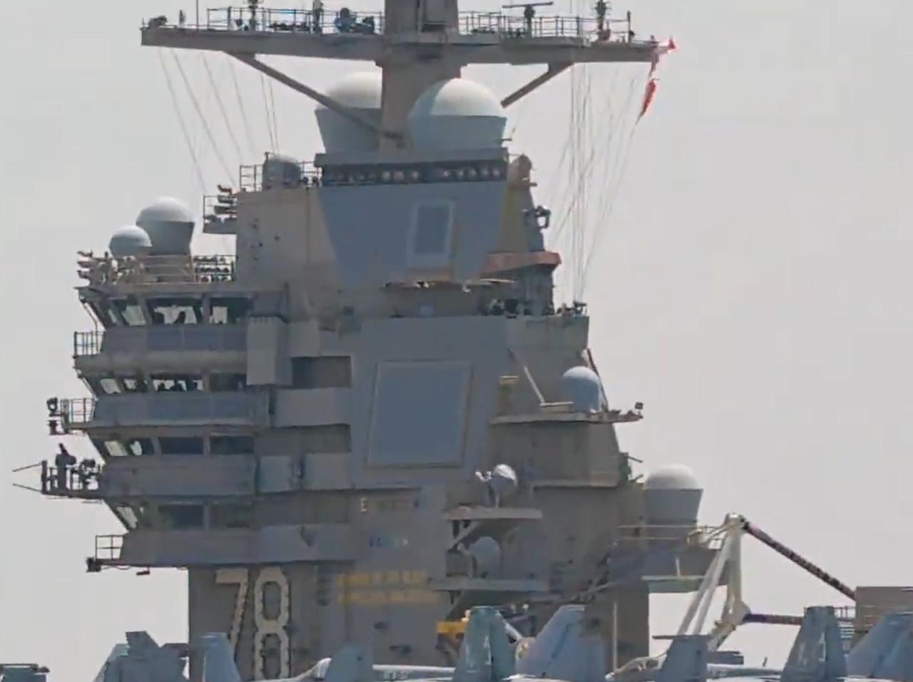 最新画面,美军福特号航母,通过苏伊士运河,正式进入红海。 通航的整个过程,都被岸上的民众拍到了。 在福特号后面,还跟着补给船。航母编队的驱逐舰,很可能已经前期通过了。 至于水下面的核潜艇,应该是一直都在阿拉伯海待命的。 另外,仔细看看福特号的船身,确实是部署时间太长了,都锈的没法看了。 这一次进入红海,福特号肯定不会再发生马桶堵塞,洗衣房着火的事件了。 但是其他设施会不会发生故障,那就不知道了。