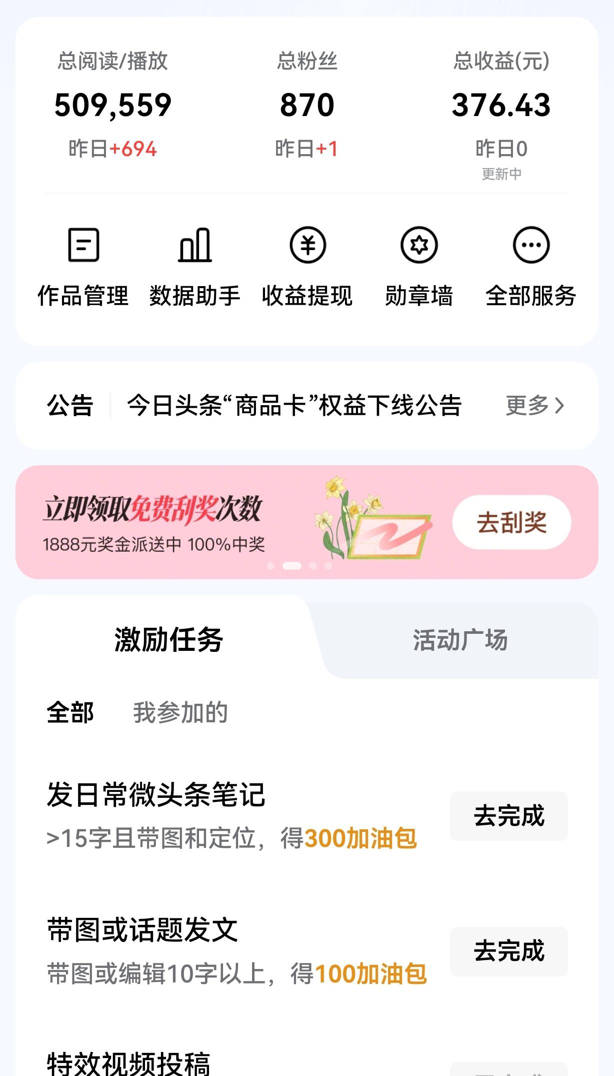 头条创作:流量和收益,到底哪个更重要? 最近,很多头条创作者都在讨论一个问题:做内容到底是流量更重要,还是收益更重要?有人说流量是命根子,没有流量一切白搭;也有人说收益才是硬道理,光有阅读没收入纯属白费功夫。两种观点吵得不可开交,不少新手更是陷入迷茫,不知道该优先冲爆款,还是专心做高单价内容,这一话题也成为了自媒体圈的热门讨论焦点。 作为常年写热点文章的创作者,我可以很肯定地说:流量是基础,收益是目的,两者根本不是对立面,而是先后关系。 对于新手来说,流量绝对比收益更重要。刚做头条,账号没有权重、没有粉丝、没有推荐,你连让别人看到你的机会都没有,还谈什么赚钱?只有先写出高流量内容,把账号做起来,让平台认可你,推荐量才会越来越高,粉丝才会越来越多。没有流量,就算你文笔再好、观点再犀利,也只能孤芳自赏,一分收益都没有。 但等账号稳定后,收益就必须提上日程。很多人有过这样的经历:一篇文章几十万阅读,结果只赚几十块钱,看着热闹,实则心酸。这时候就不能只盲目追流量,要学会提升内容质量、优化垂直领域、提高完读率,让流量真正变成钱。光有流量没有收益,创作就没有持续动力,早晚坚持不下去。 更现实的是,我们做自媒体,大多是为了改善生活、增加收入。流量带来成就感,收益带来安全感。只看流量容易陷入低质爆款陷阱,账号单价越来越低;只看收益又容易闭门造车,内容没人看,最后两头落空。真正聪明的创作者,都是用流量打基础,用收益做动力,两手一起抓。 流量决定你能走多快,收益决定你能走多远。没有流量寸步难行,没有收益难以长久。做头条创作,不必非此即彼,既要懂得抓住热点做流量,也要坚持优质内容提收益。 对于头条创作者来说,你觉得流量和收益哪个更重要?是愿意先冲爆款,还是稳扎稳打做高收益内容?欢迎在评论区说说你的看法。 自媒体流量与收益 自媒体干货