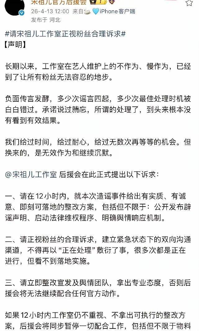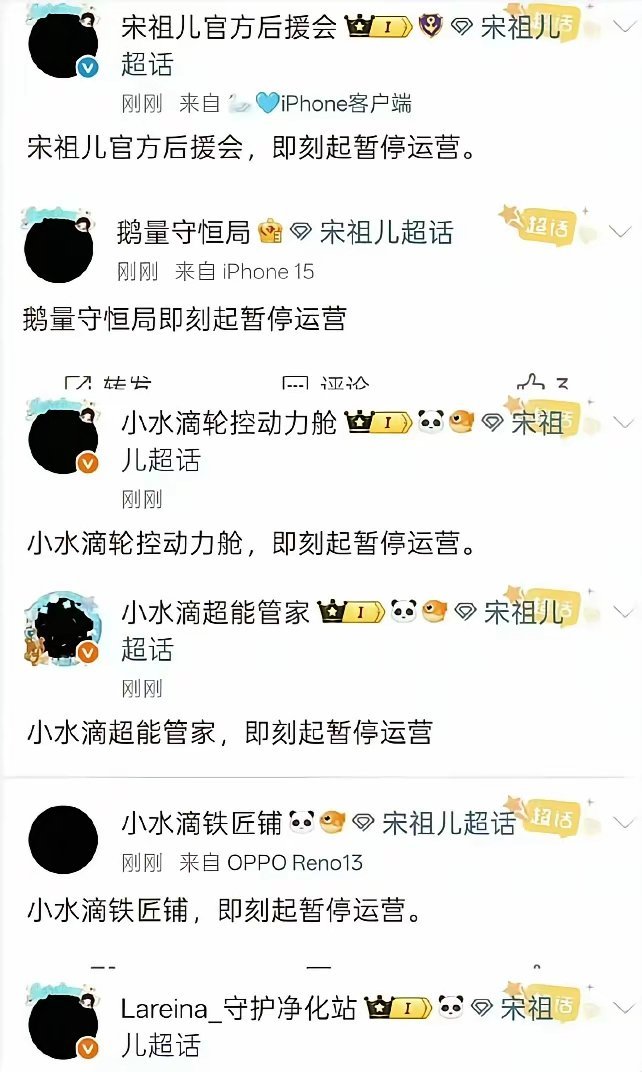 后援会以及粉丝都乖乖把头像换回来了,之前好几家以停止运营威胁,最终都没成功。宋祖儿后援会暂停运营